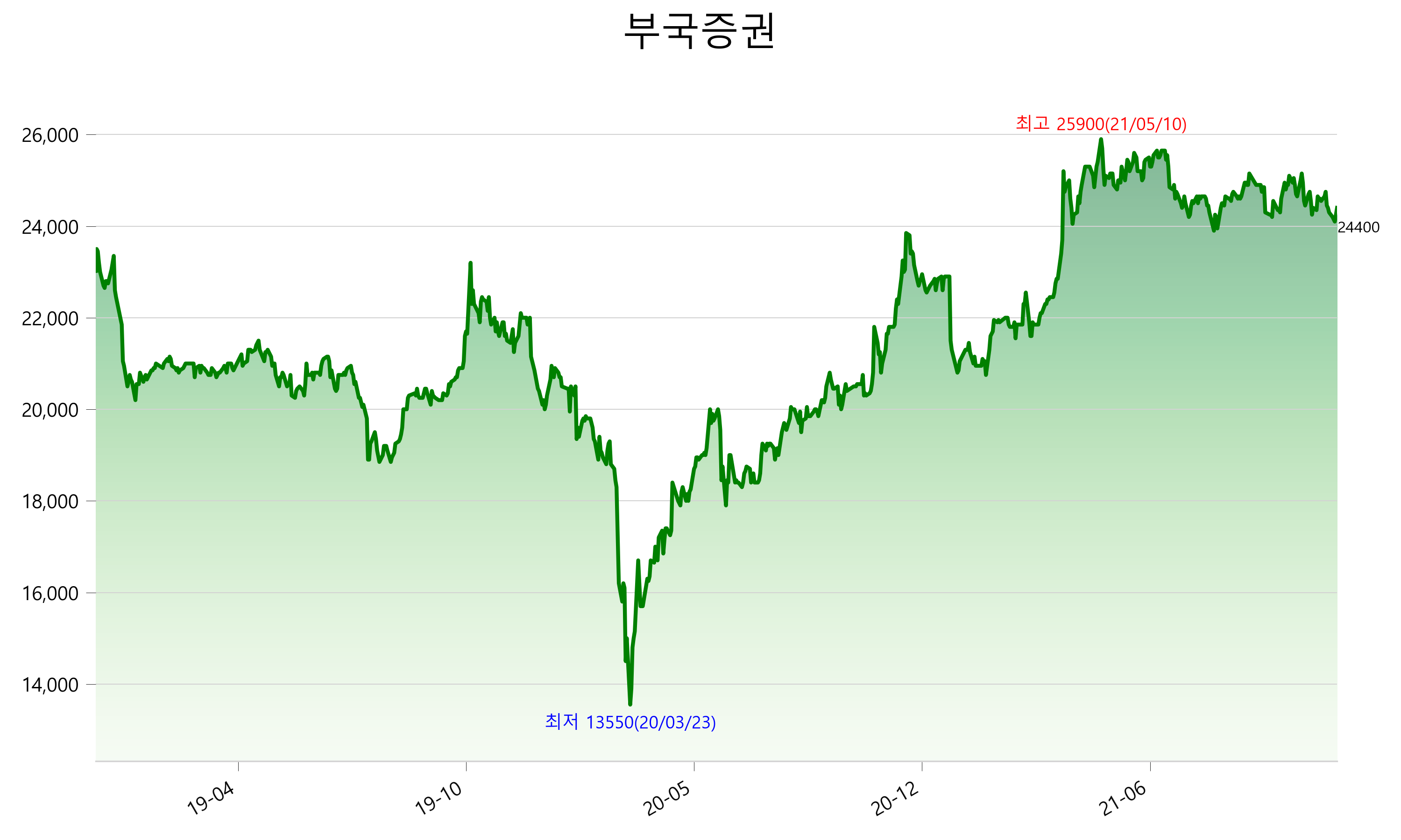 52주 최고가는 25,900원(2021-05-10), 52주 최저가는 20,750원(2021-01-29)으로 52주간 변동률은 8.0% 입니다.