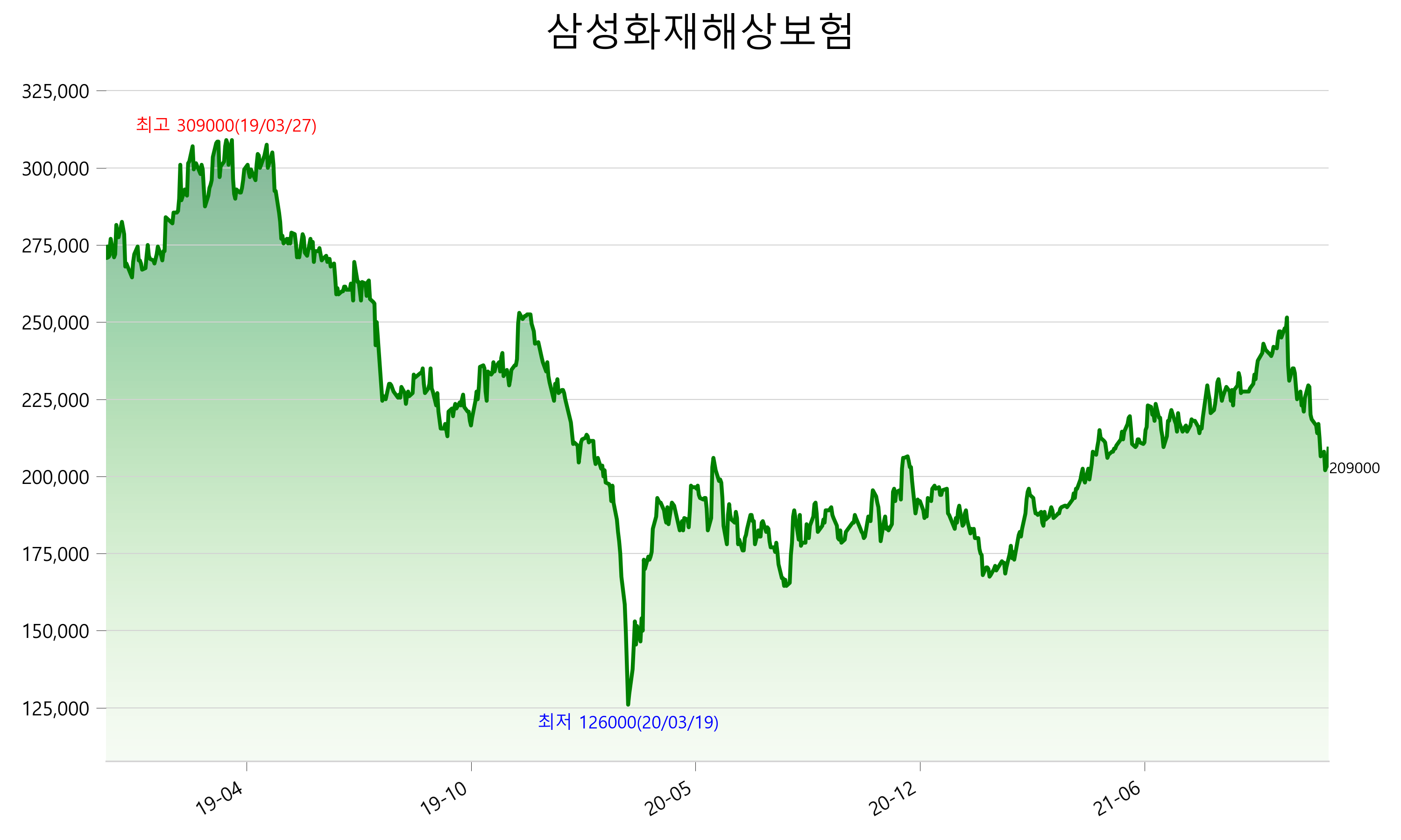 12월 6일 기준 주가는 209,000원 입니다. 아래는 최근 3년간의 주가흐름입니다.