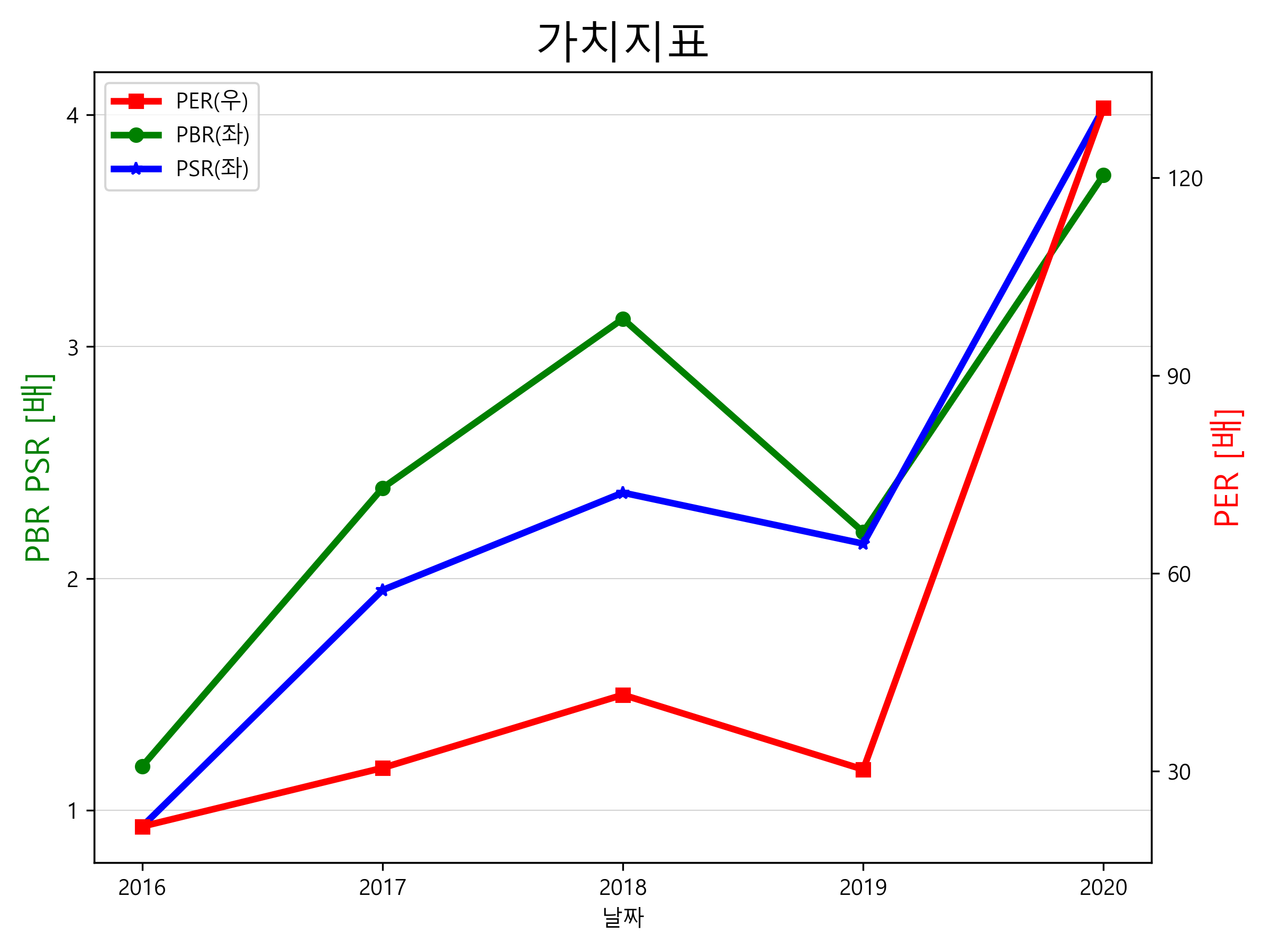 - PER : 68.19배, 동일업종 PER : 10.17배