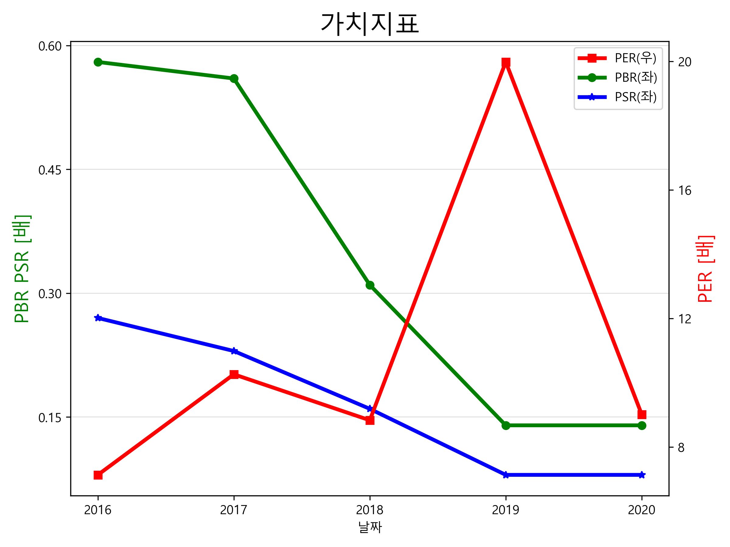 한화생명의 PER, PBR, PSR입니다.