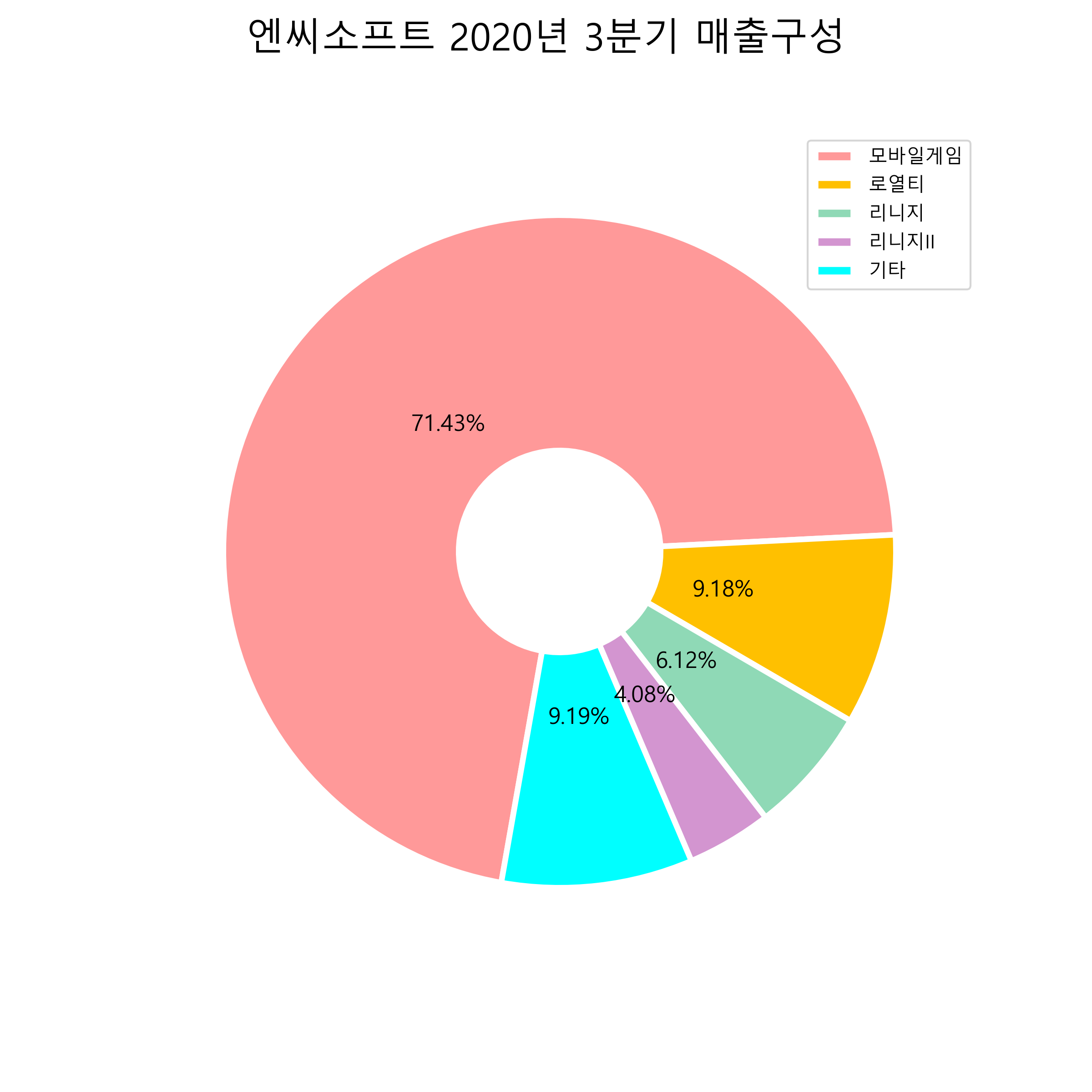 엔씨소프트의 2020년 3분기 매출구성입니다.