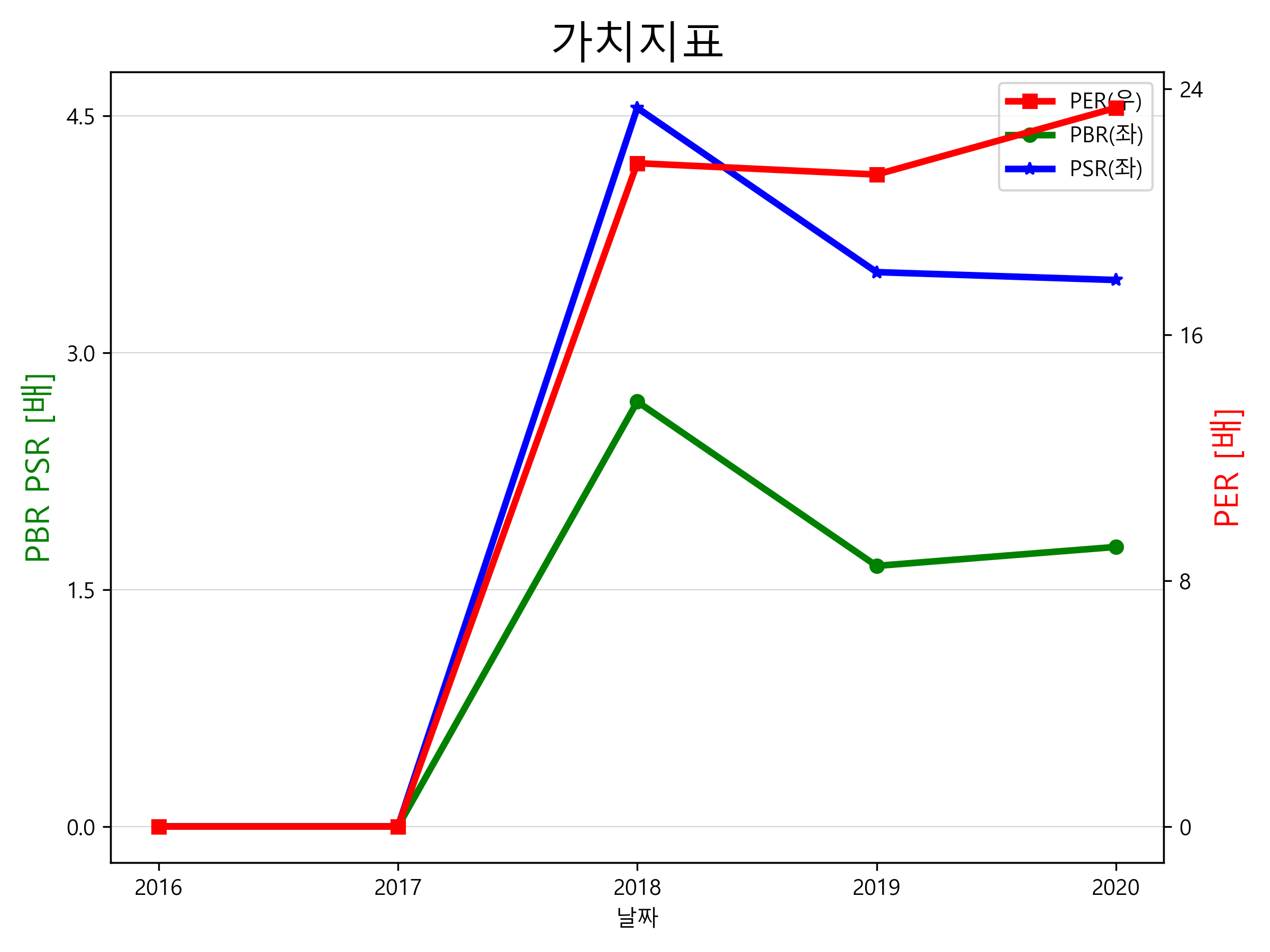 대유의 PER, PBR, PSR입니다.