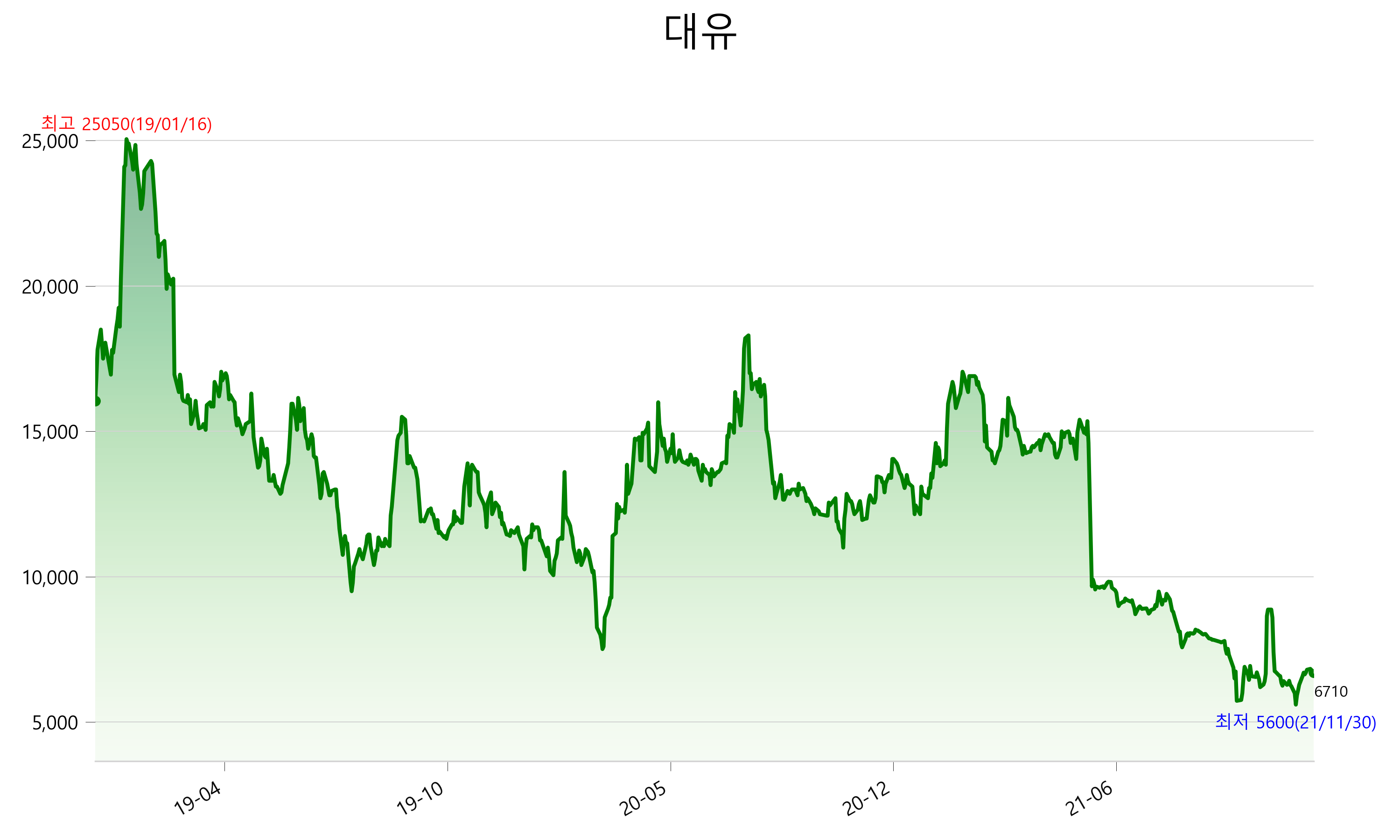 12월 17일 기준 주가는 6,710원 입니다. 아래는 최근 3년간의 주가흐름입니다.