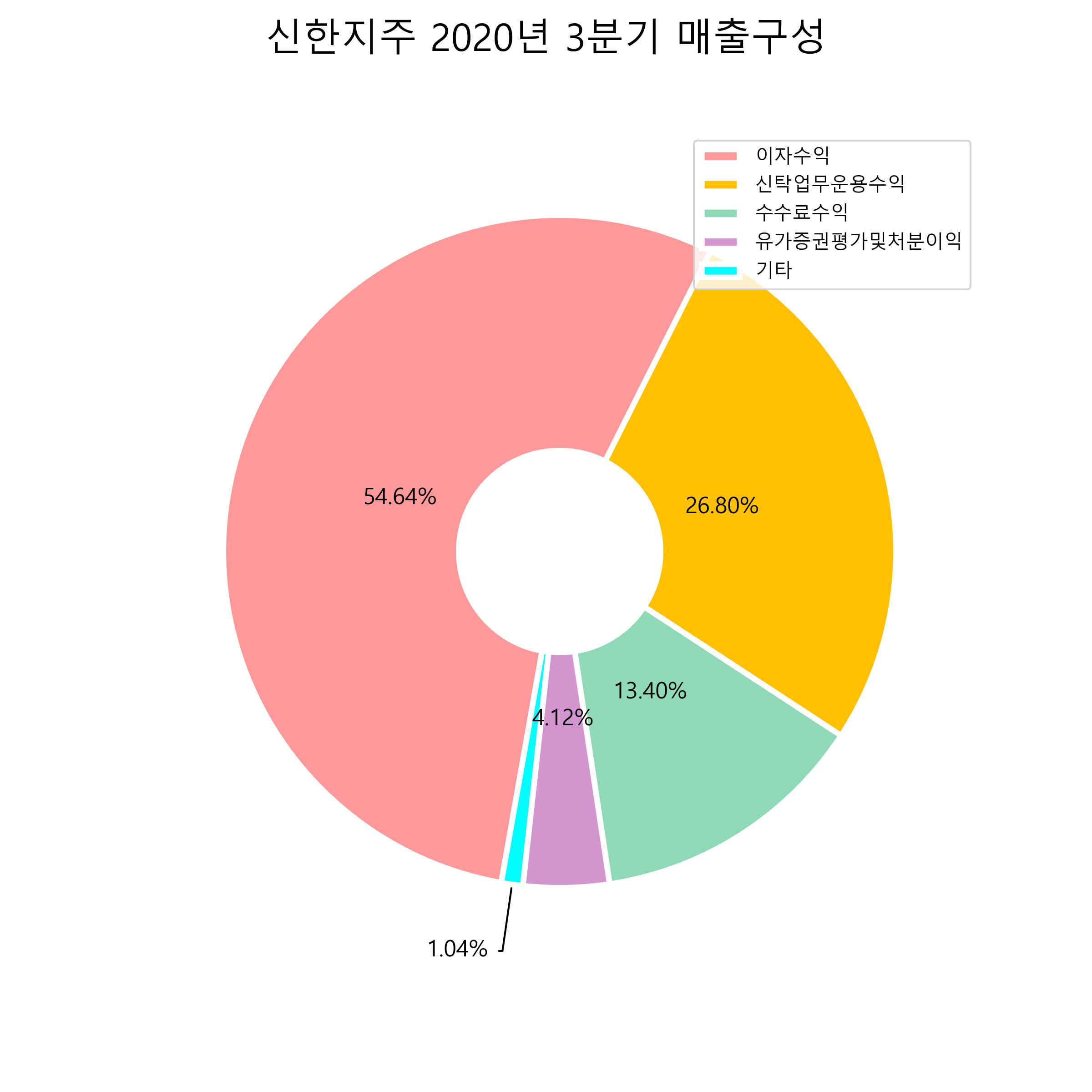 신한지주의 2020년 3분기 매출구성입니다.