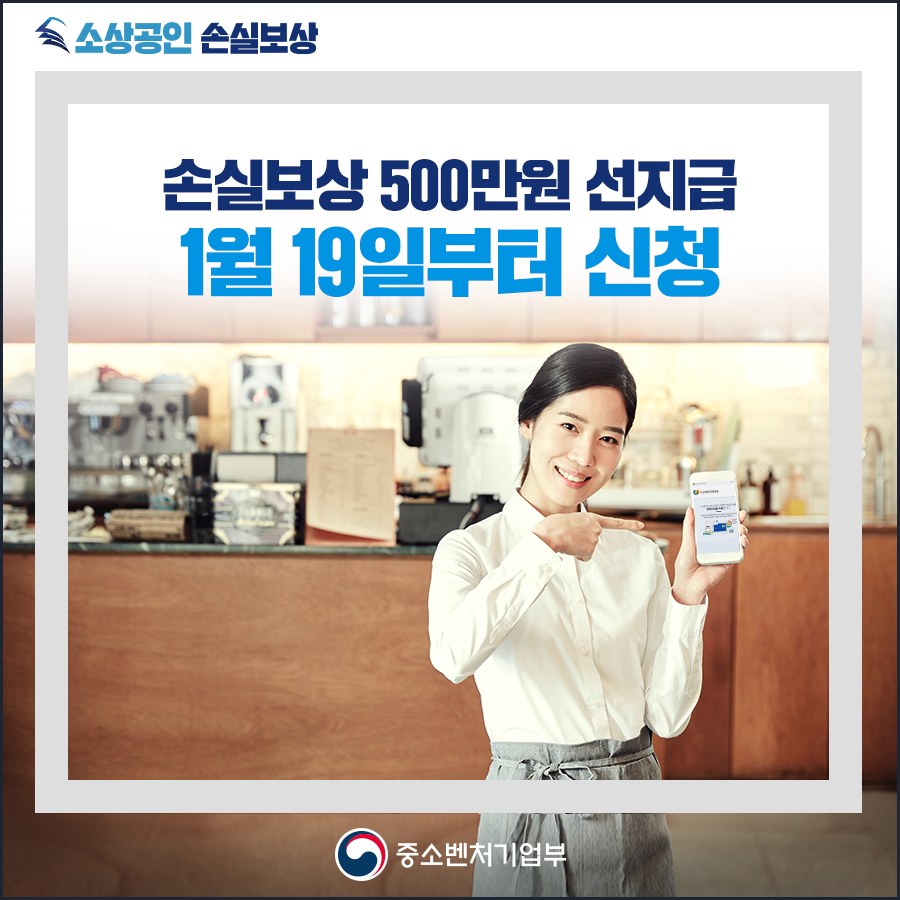 ’21.12.6(월)부터 ’22.1.16(일)까지 영업시간 제한받은 소상공인・소기업 55만개사 대상으로 손실보상 500만원 선지급 실시합니다. 자세한 내용을 알려드리겠습니다.