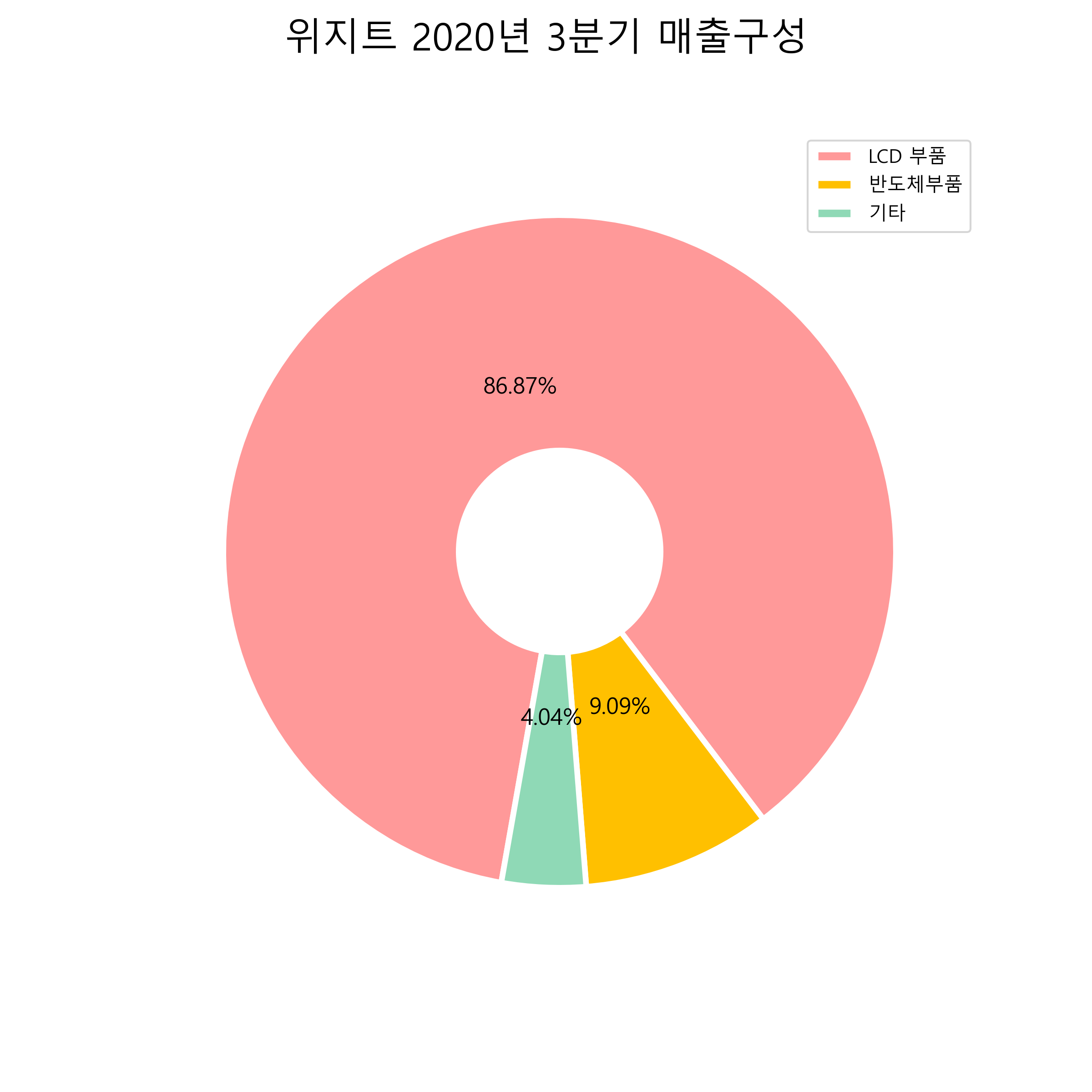 위지트의 2020년 3분기 매출은 83억원, 영업이익 1억원, 당기순이익 31억원을 기록했습니다. 위지트의 분기별 매출 및 영업이익, 당기순이익 표입니다.