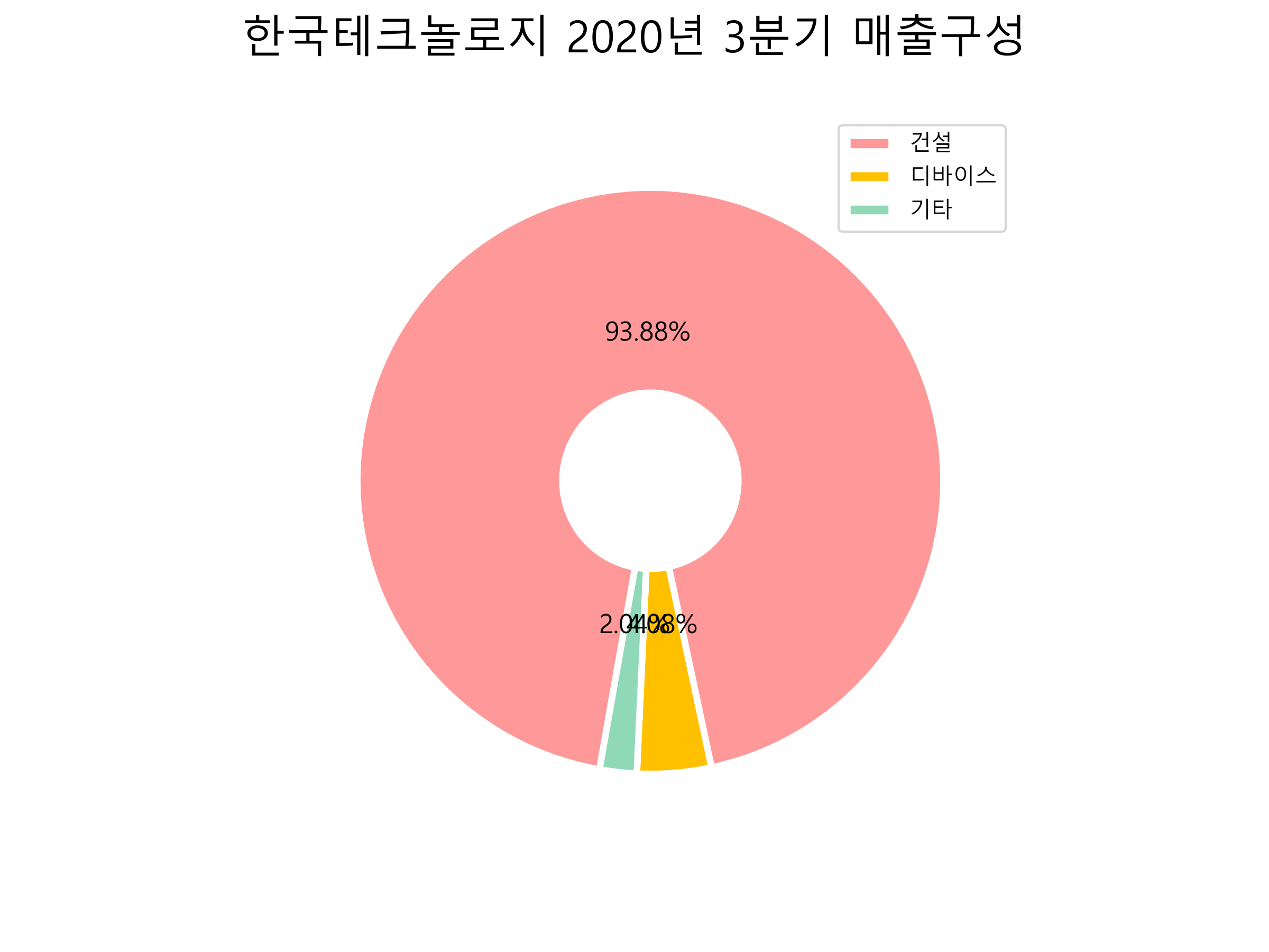 한국테크놀로지의 2020년 3분기 매출구성입니다.
