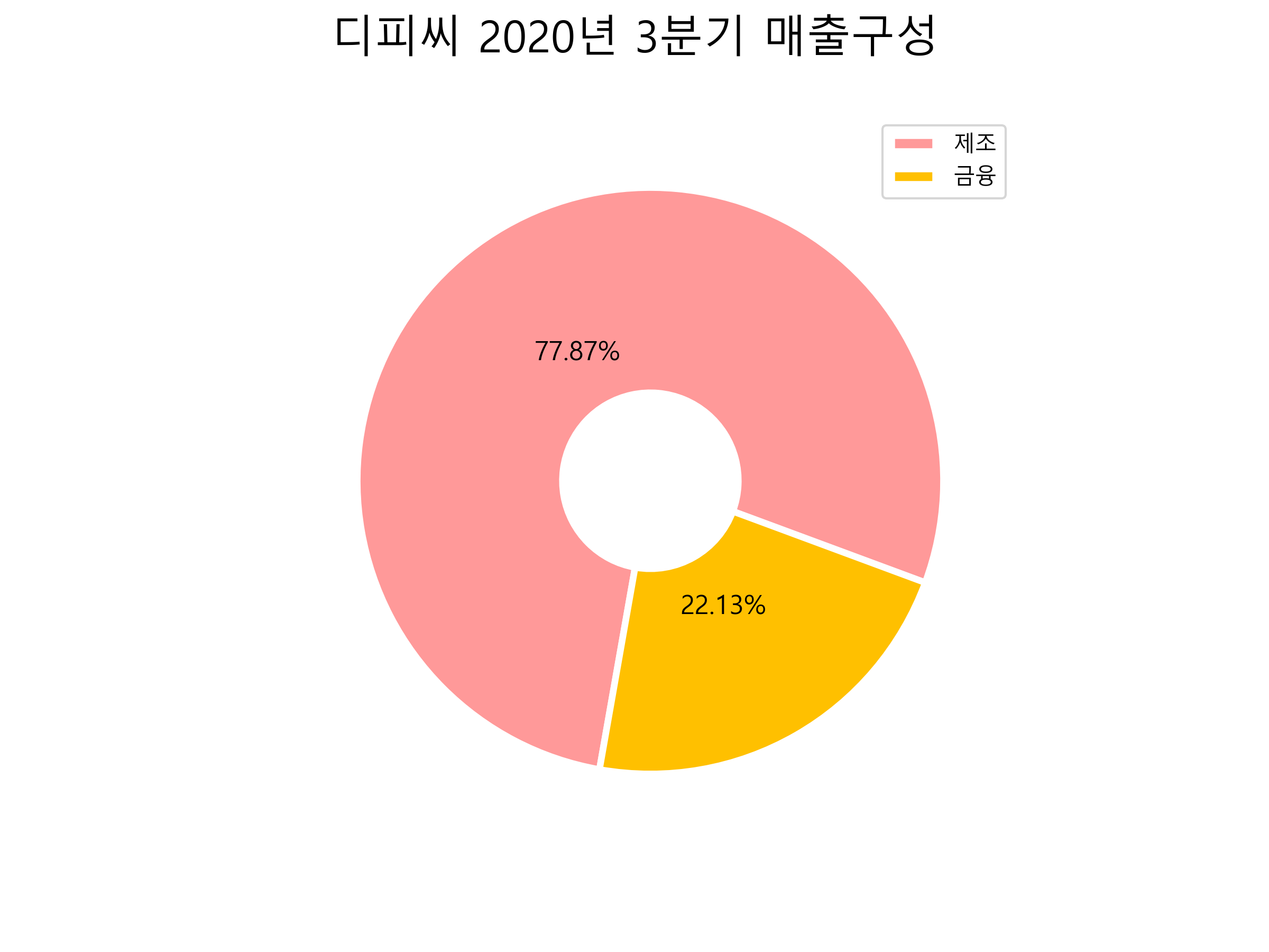디피씨의 2020년 3분기 매출구성입니다.