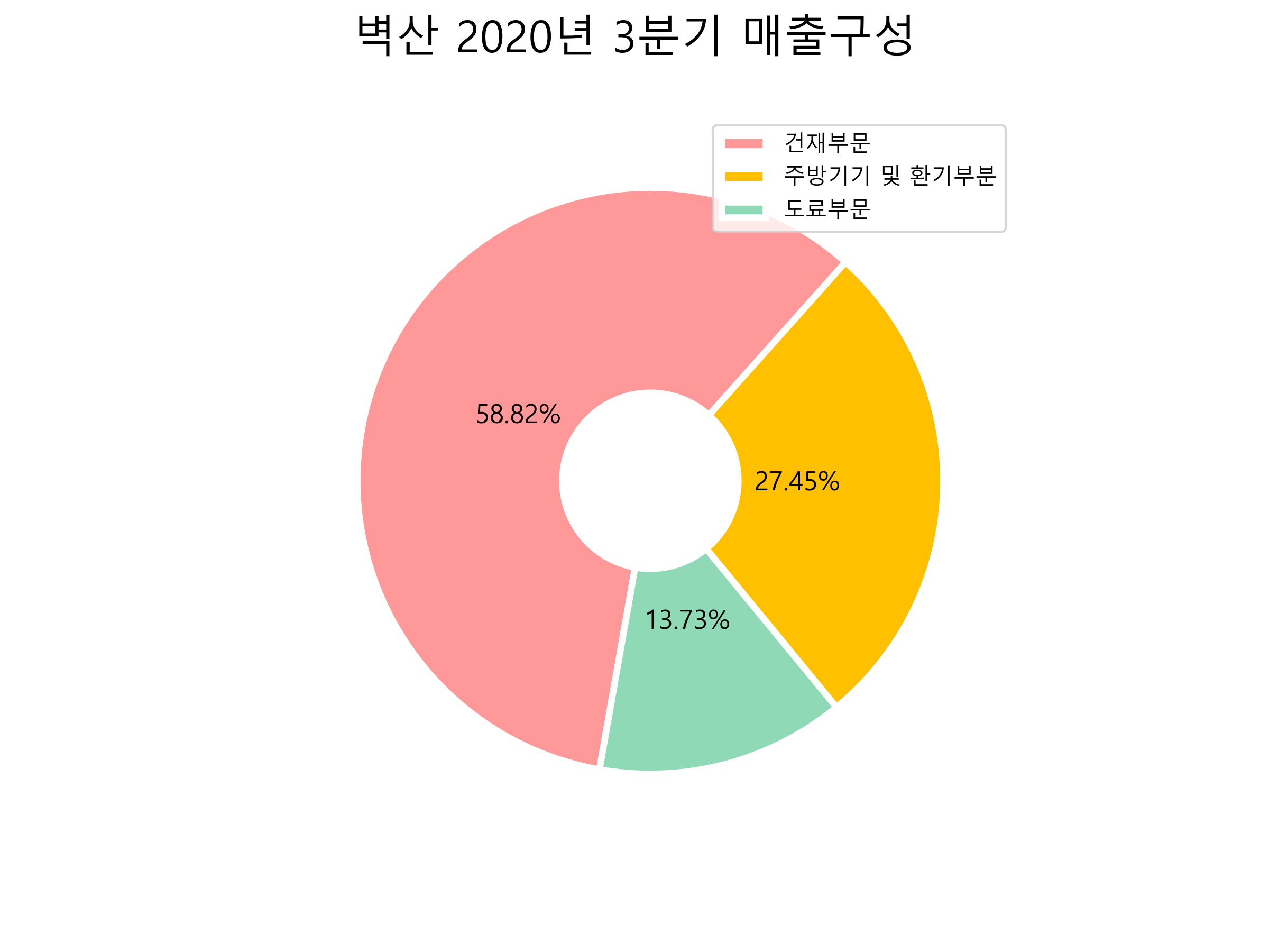벽산의 2020년 3분기 매출구성입니다.