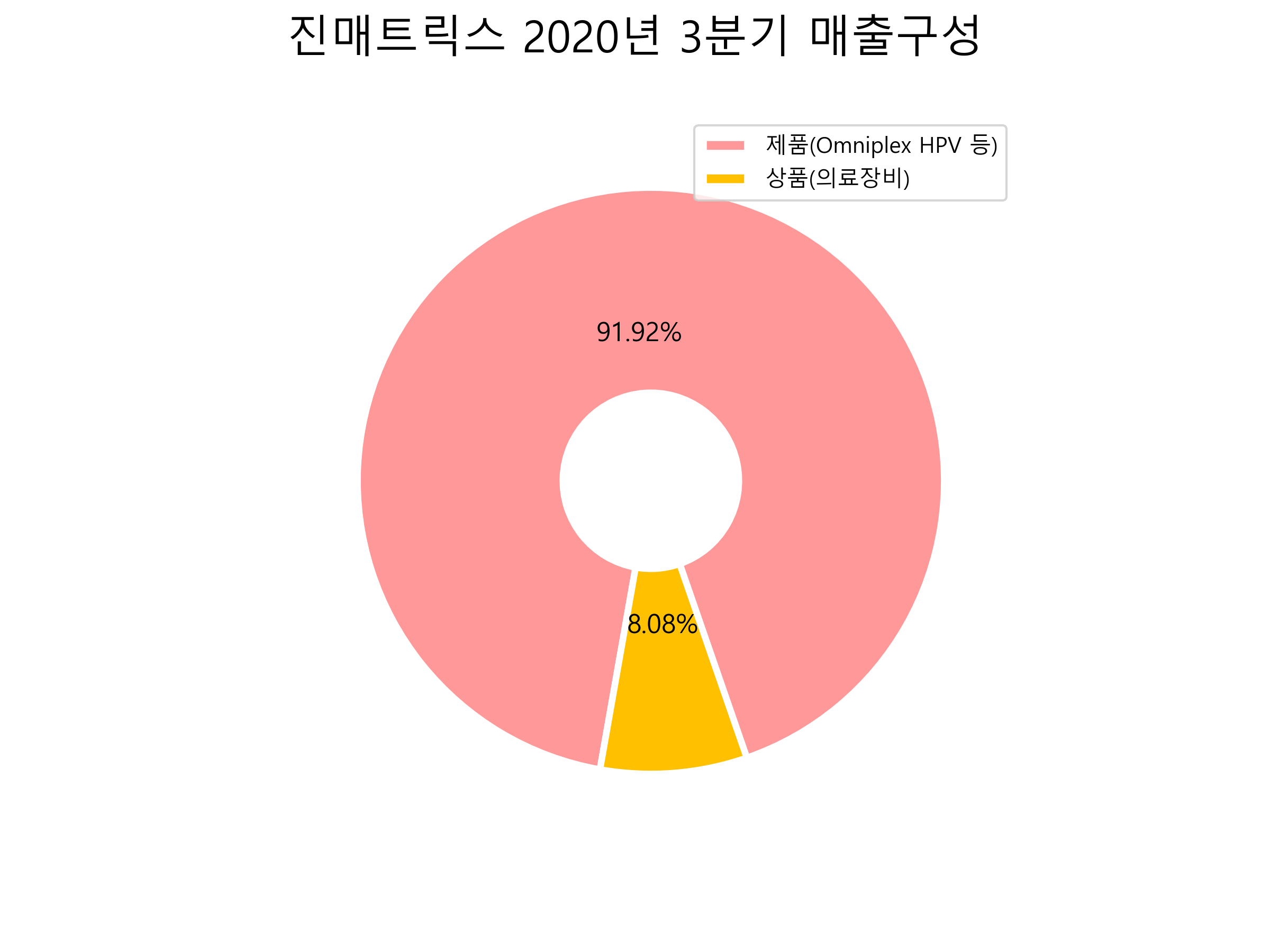 진매트릭스의 2020년 3분기 매출구성입니다.