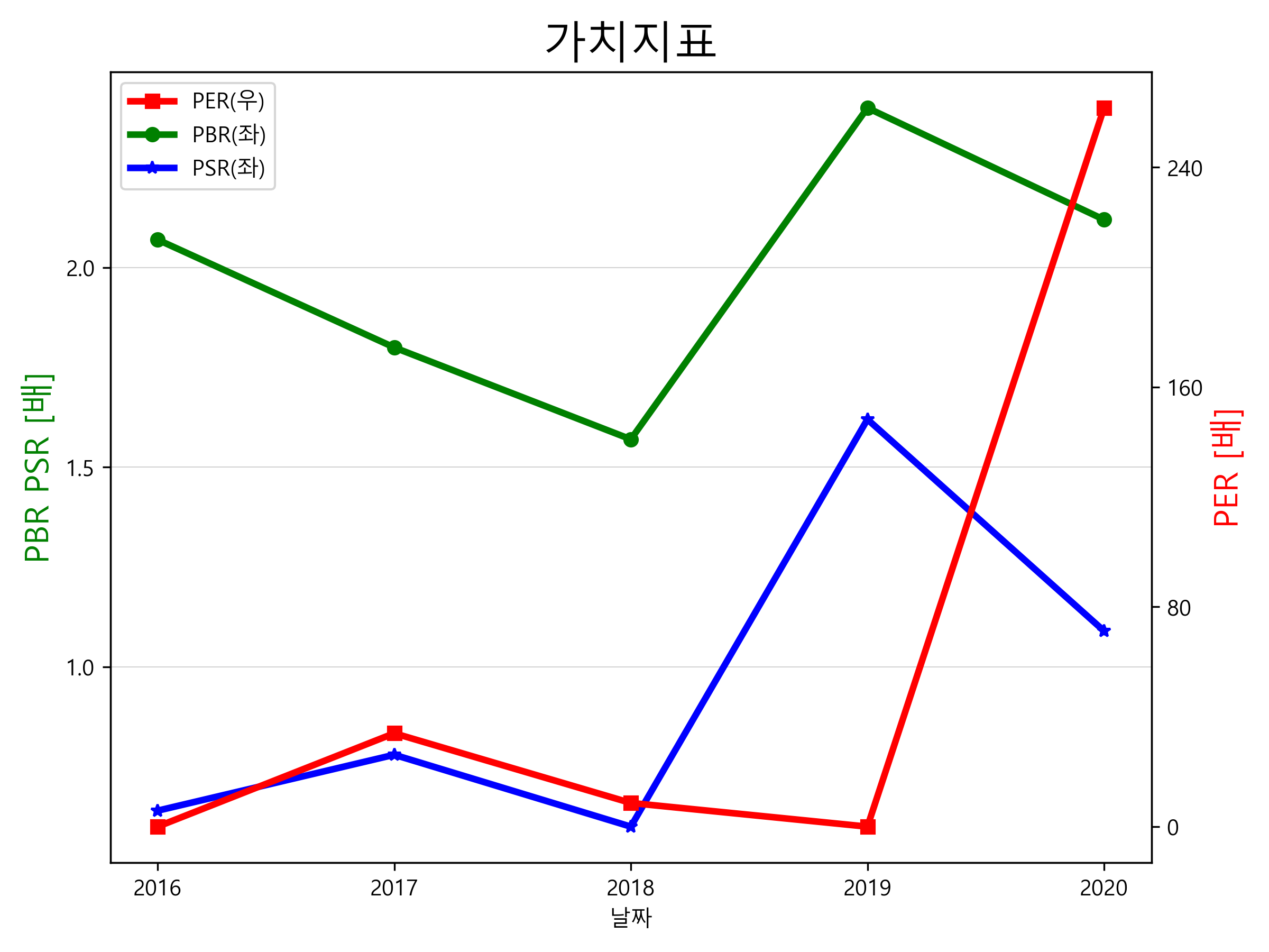 - PER : 393.33배, 동일업종 PER : -71.12배