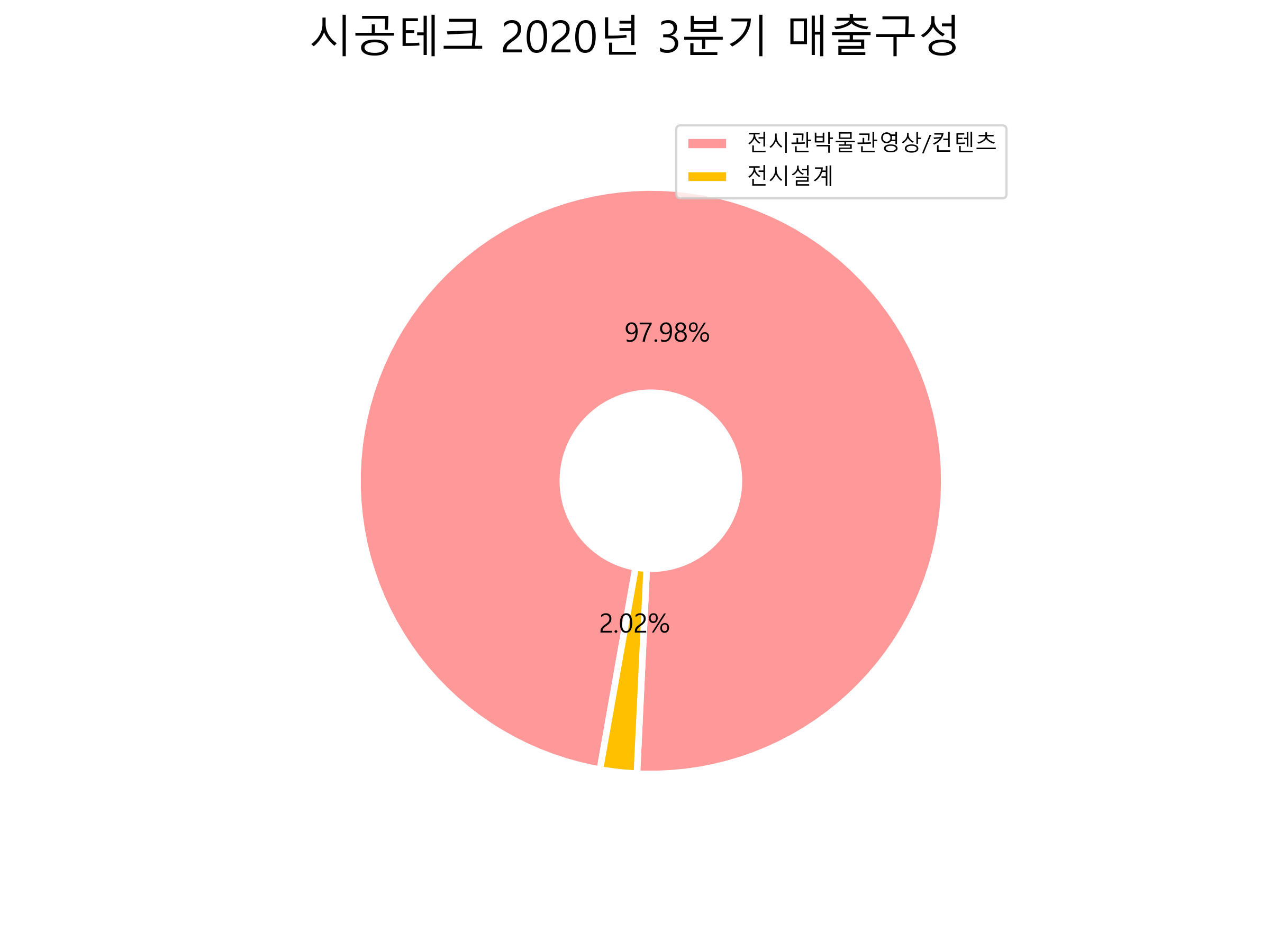 시공테크의 2020년 3분기 매출구성입니다.