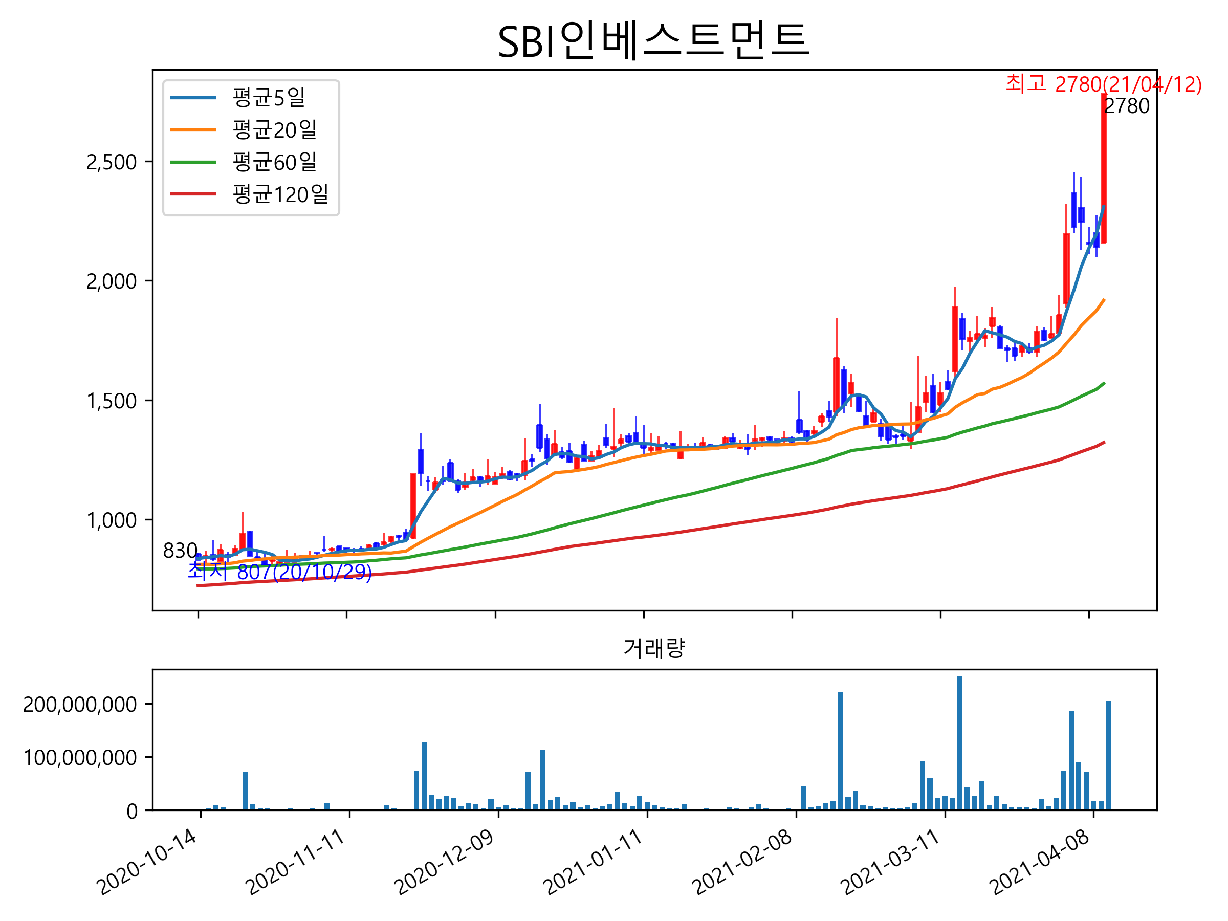 SBI인베스트먼트는 벤처기업 투자 전문업체로. 펀드를 통해 빗썸에 투자를 진행하면서 비트코인 관련주로 분류됩니다. 비트코인이 이틀째 7800만원대에 거래되며 강세를 보이자 SBI인베스트먼트도 이에 영향을 받은 것으로 보여집니다.