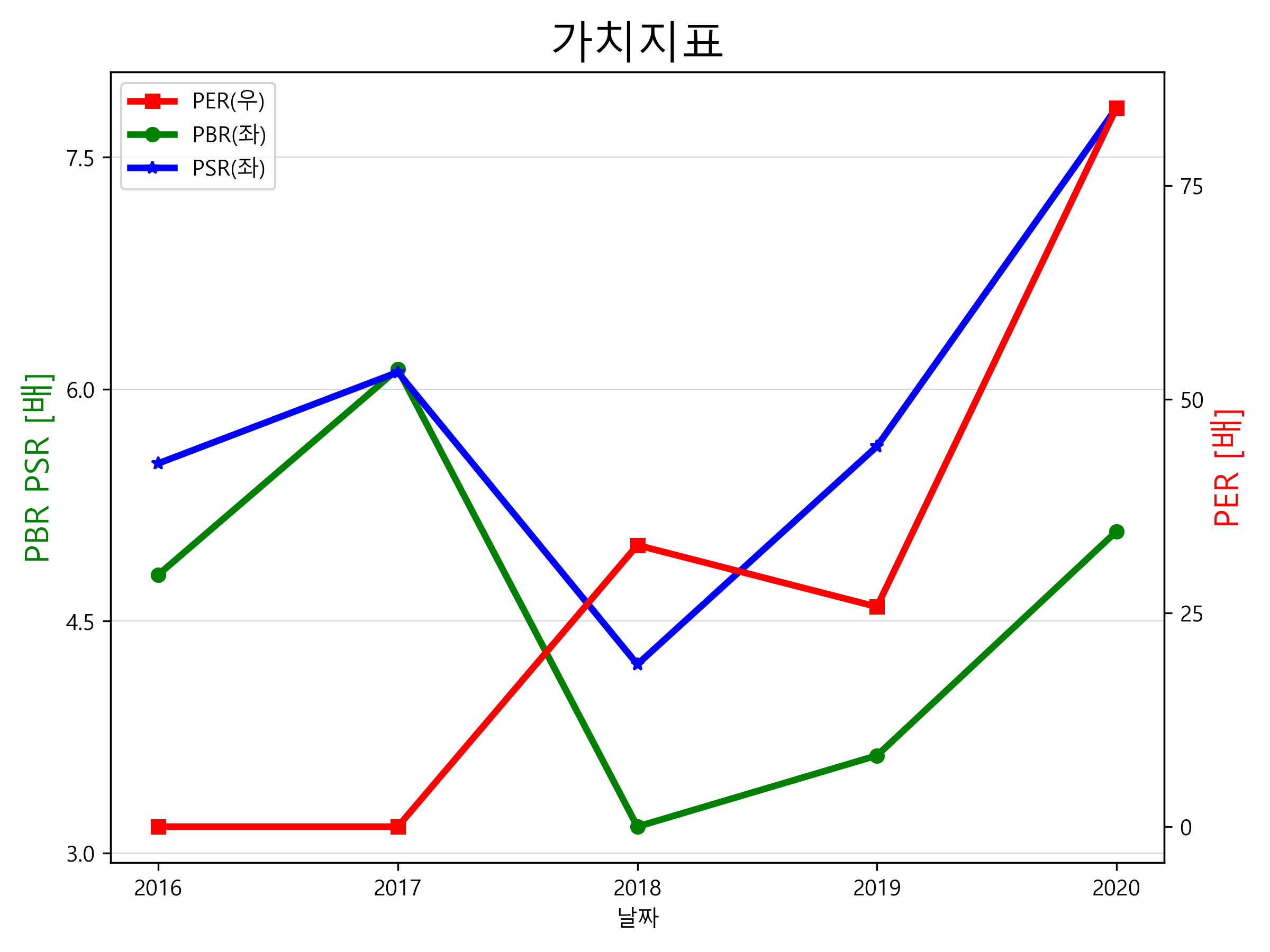 - PER : 96.89배, 동일업종 PER : 20.43배