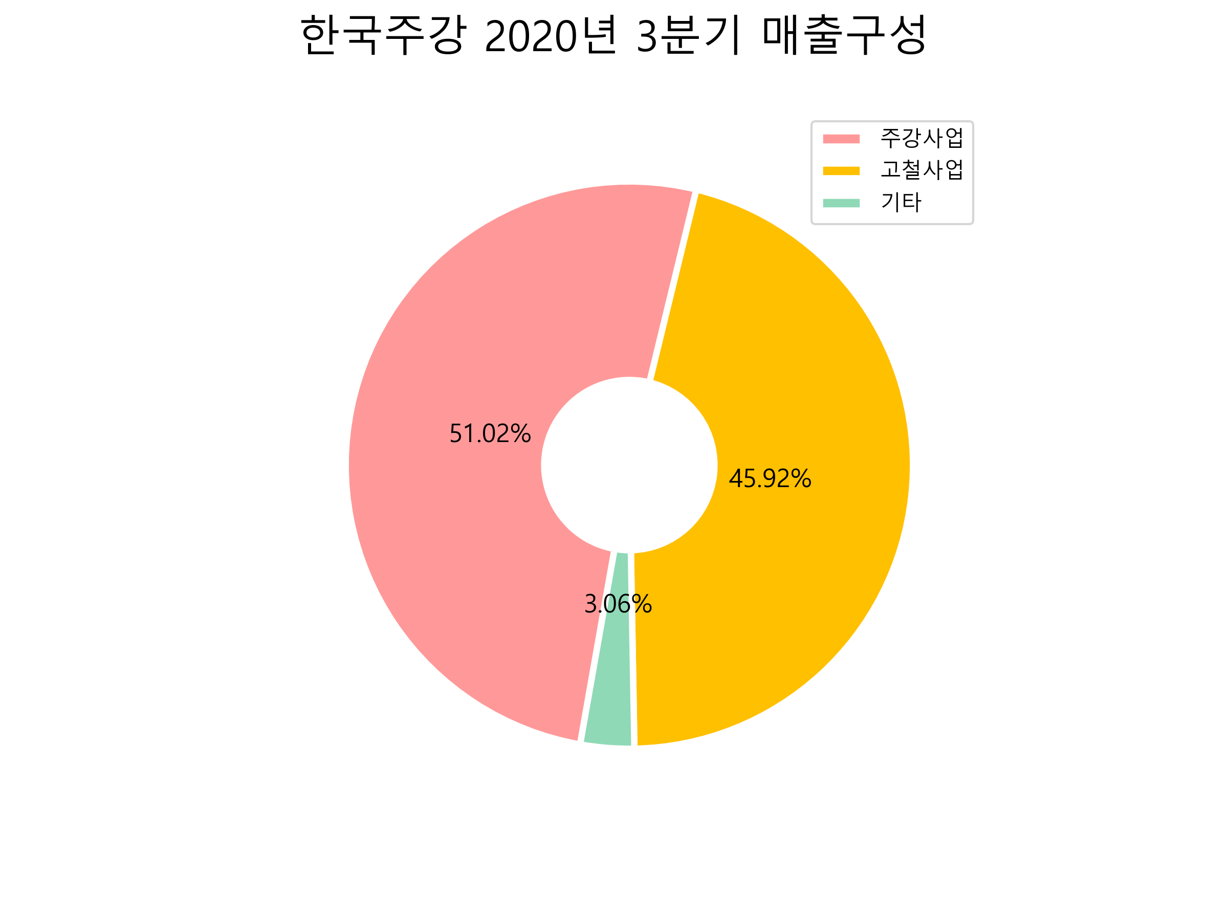한국주강의 2020년 3분기 매출구성입니다.