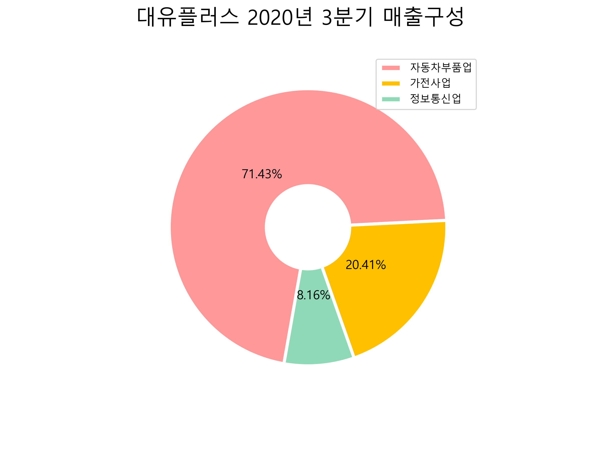 - 매출 구성은 정보통신부문이 8.61%, 가전사업부문이 20.81%, 자동차부품부문이 70.58%를 차지함.