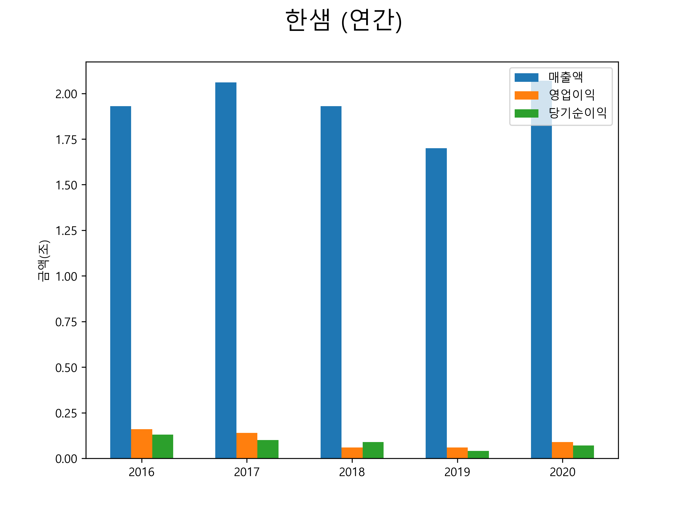 | 매출액 | 1조 9345억 | 2조 0625억 | 1조 9285억 | 1조 6984억 | 2조 0675억 |