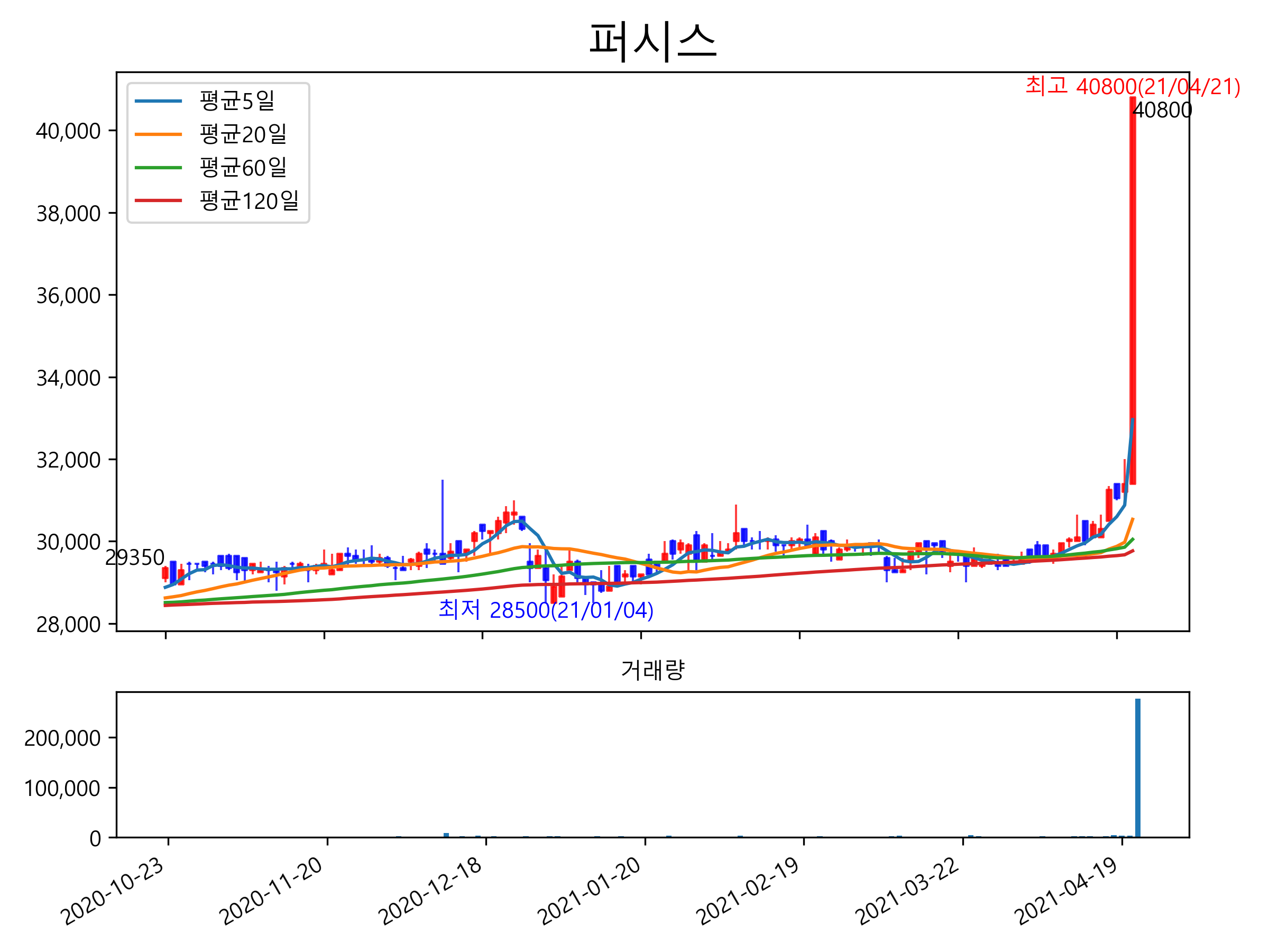 퍼시스는 크게 호재가 없었는데 상한가를 기록했습니다. 퍼시스는 5년 전 윤석열 전 검찰총장의 부인 김건희 코바나컨텐츠 대표가 주최한 ‘르 코르뷔지에전’에 후원한 바가 있으며, 윤기언 대표이사가 윤석열 전 검찰총장과 같은 서울대 동문이기에 윤석열 관련주로 분류되어서 급등했다는 시각이 있습니다.