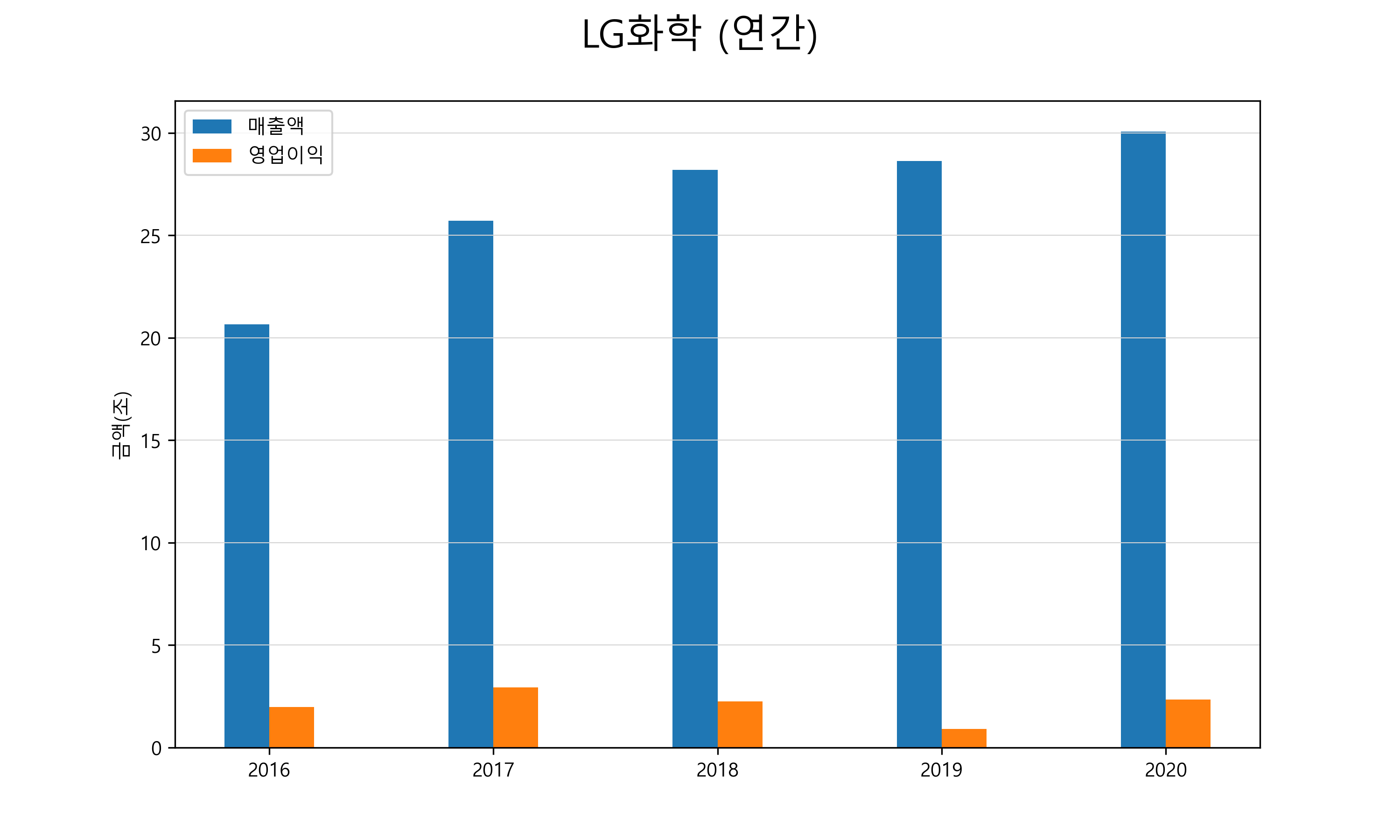 LG화학의 최근 5년간 실적입니다.