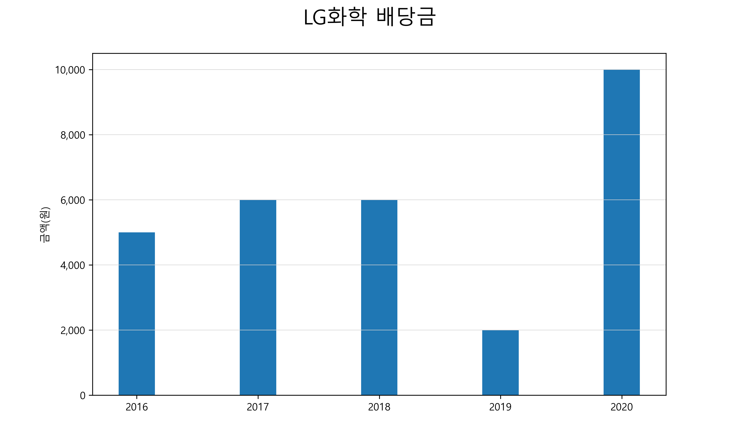 | 배당금 | 5,000 | 6,000 | 6,000 | 2,000 | 10,000 |