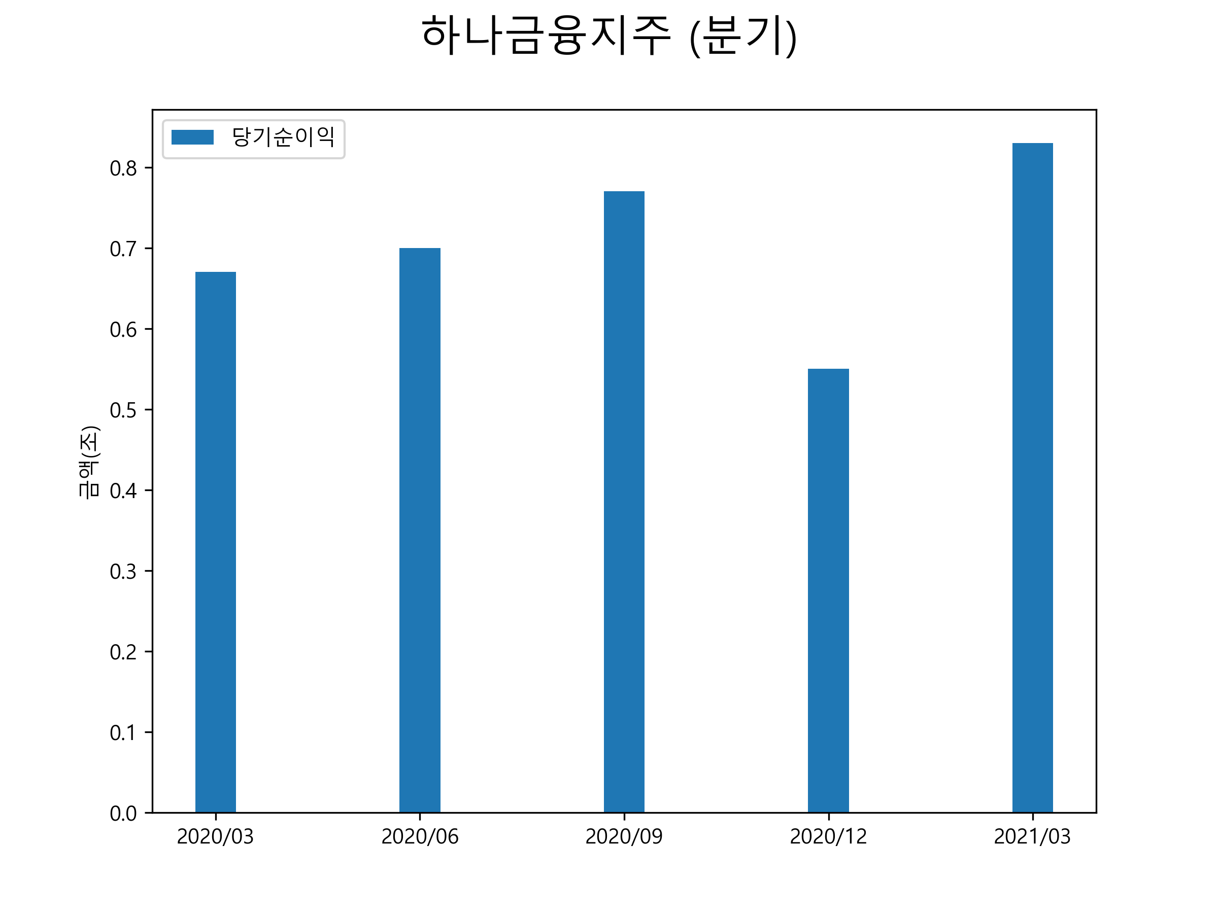 하나금융지주의 2021년 1분기 당기순이익은 8344억원을 기록했습니다. 분기별 당기순이익 표입니다.