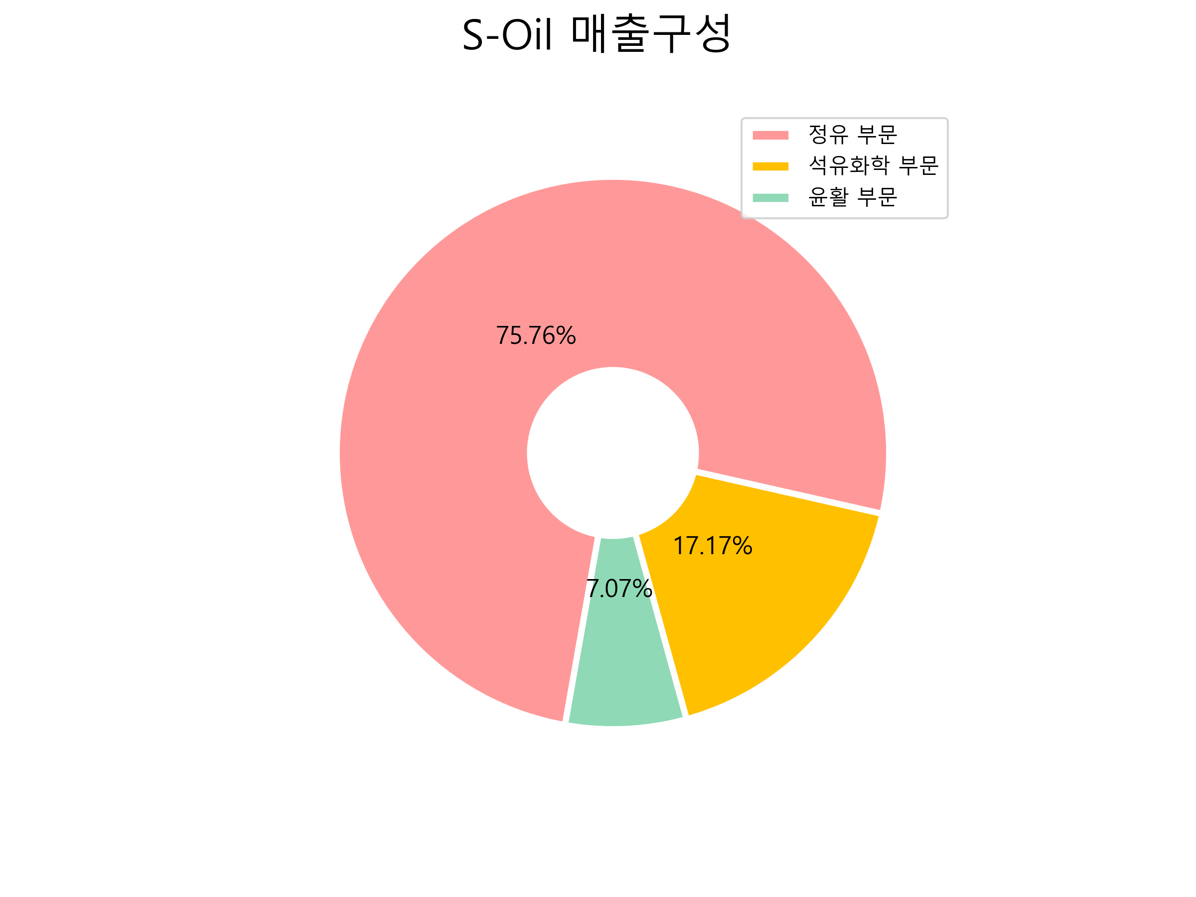 사업부문별로는 정유 부문에서 1분기 영업이익 3420억 원을 기록해 흑자 전환에 성공했으며, 석유화학 부문은 영업이익 983억원, 윤활기유 부문은 영업이익 1889억 원을 기록했습니다. 영업이익의 45%가 비정유부문(석유화학, 윤활기유)에서 발생했습니다.