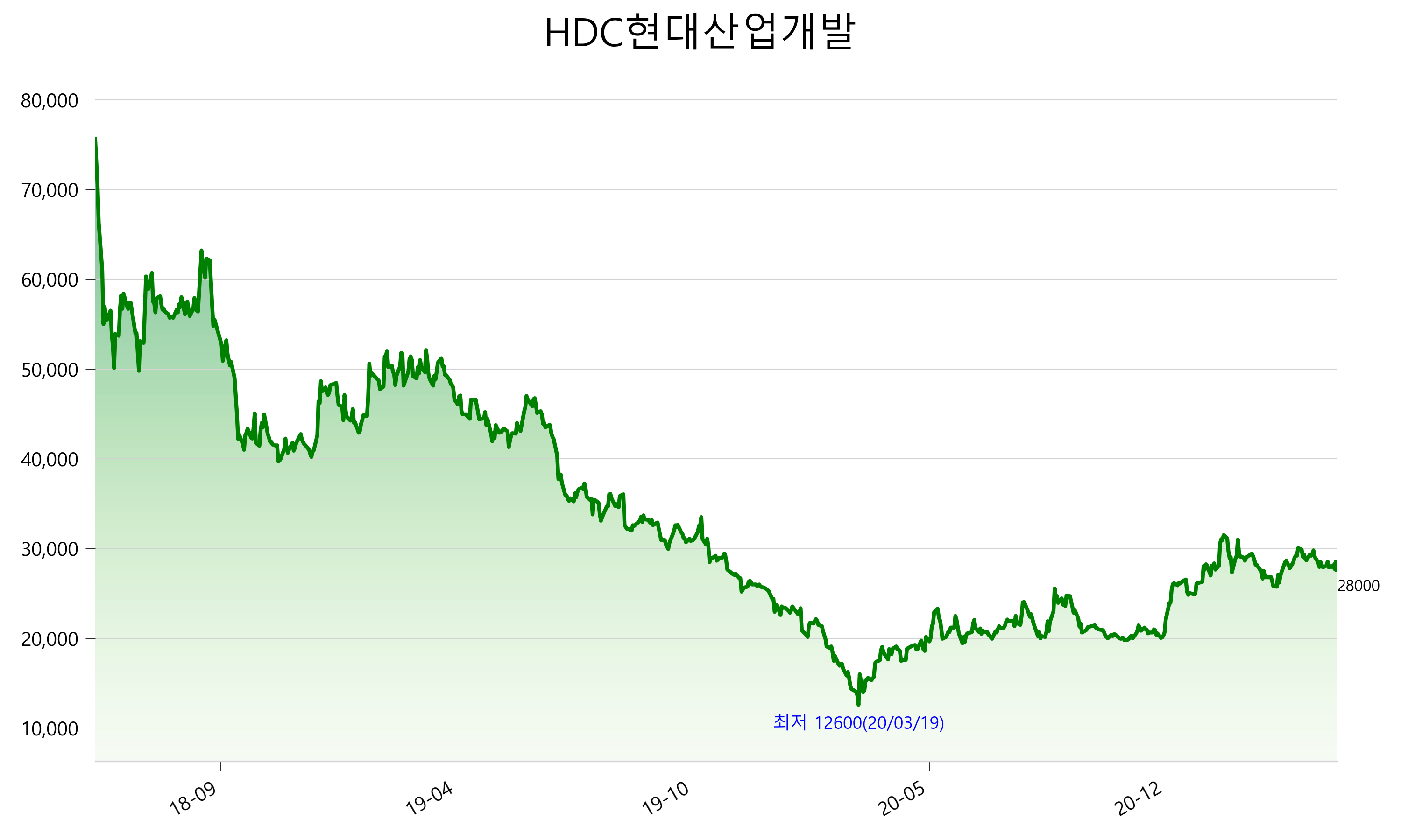 2021년 04월 29일 기준 주가는 28,000원 입니다. 아래는 최근 3년간의 주가흐름입니다.