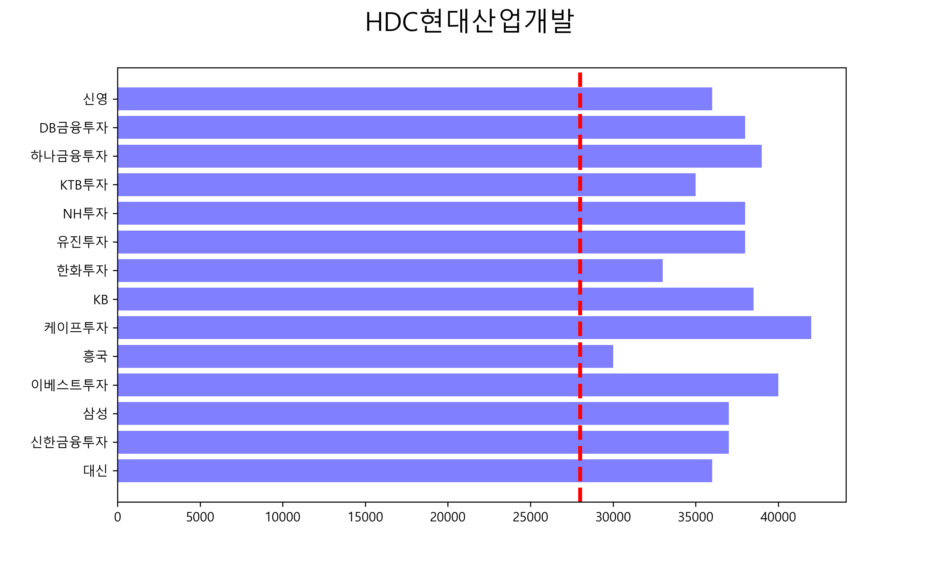 현재 주가보다 상승할 것이라고 예측한 증권사은 14 곳이며 하락할 것이라고 예측한 증권사는 0곳 입니다. HDC현대산업개발의 2021년 04월 29일 기준 현재 주가로 28,000원 입니다.목표주가 평균추정치는 36,964원 으로 현재 주가 대비 32.0% 높습니다.