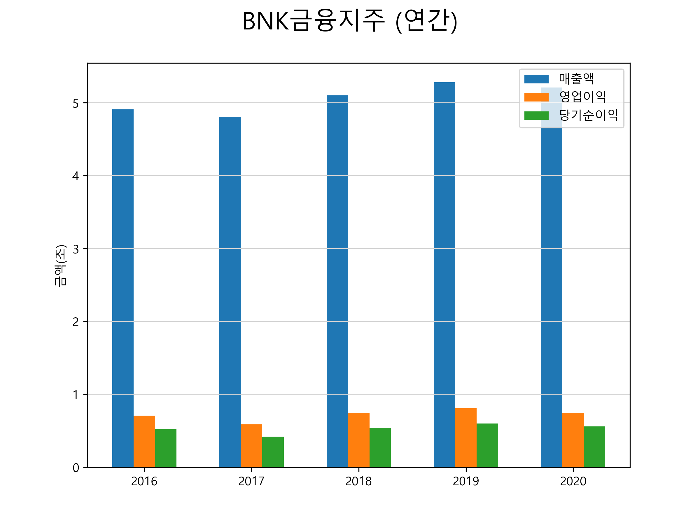 | 당기순이익 | 5181억 | 4250억 | 5381억 | 5989억 | 5626억 |