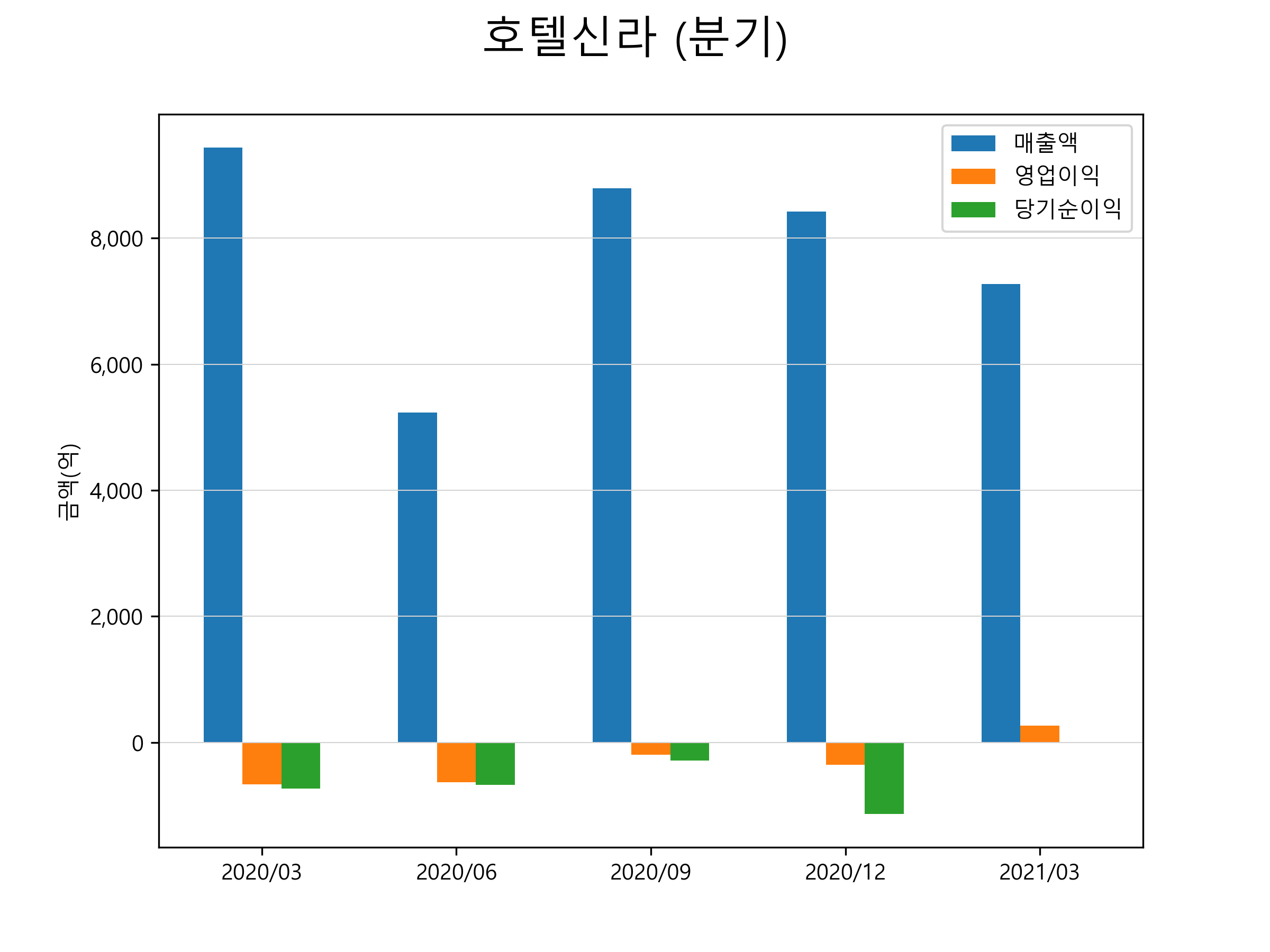 영업이익은 4분기 만에 흑자전환에 성공했는데, 면세 사업이 흑자로 전환하면서 호텔&레저 사업의 적자를 상쇄한 데 따른 것입니다.