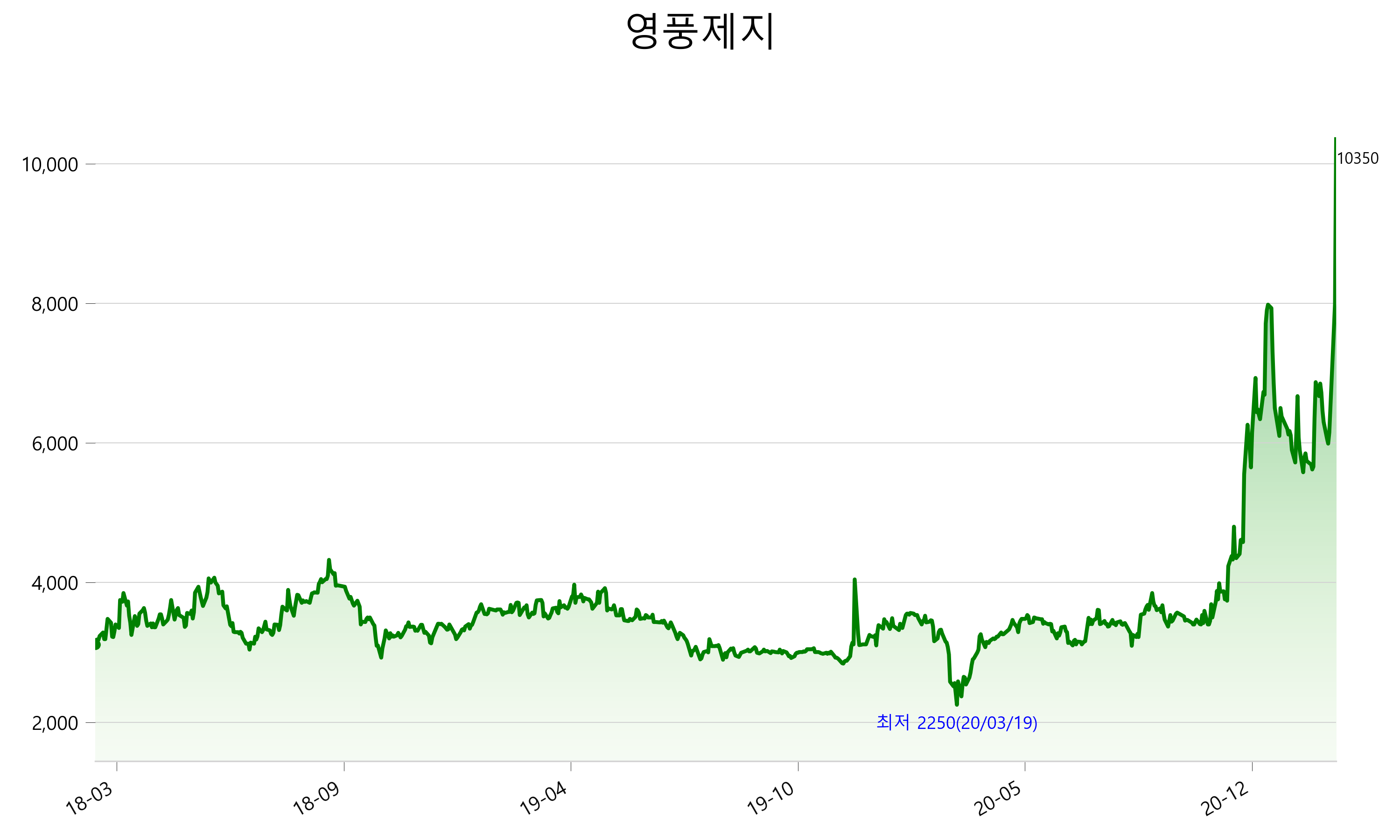 제지업인 영풍제지는 쿠팡의 미국증시 상장으로 인해 최근 급상승 중입니다. 설 연휴를 계기로 박스대란이 발생하고 쿠팡 상장 소식까지 전해지면서 골판지 제조사들의 주가가 일제히 급등하고 있는 것입니다.