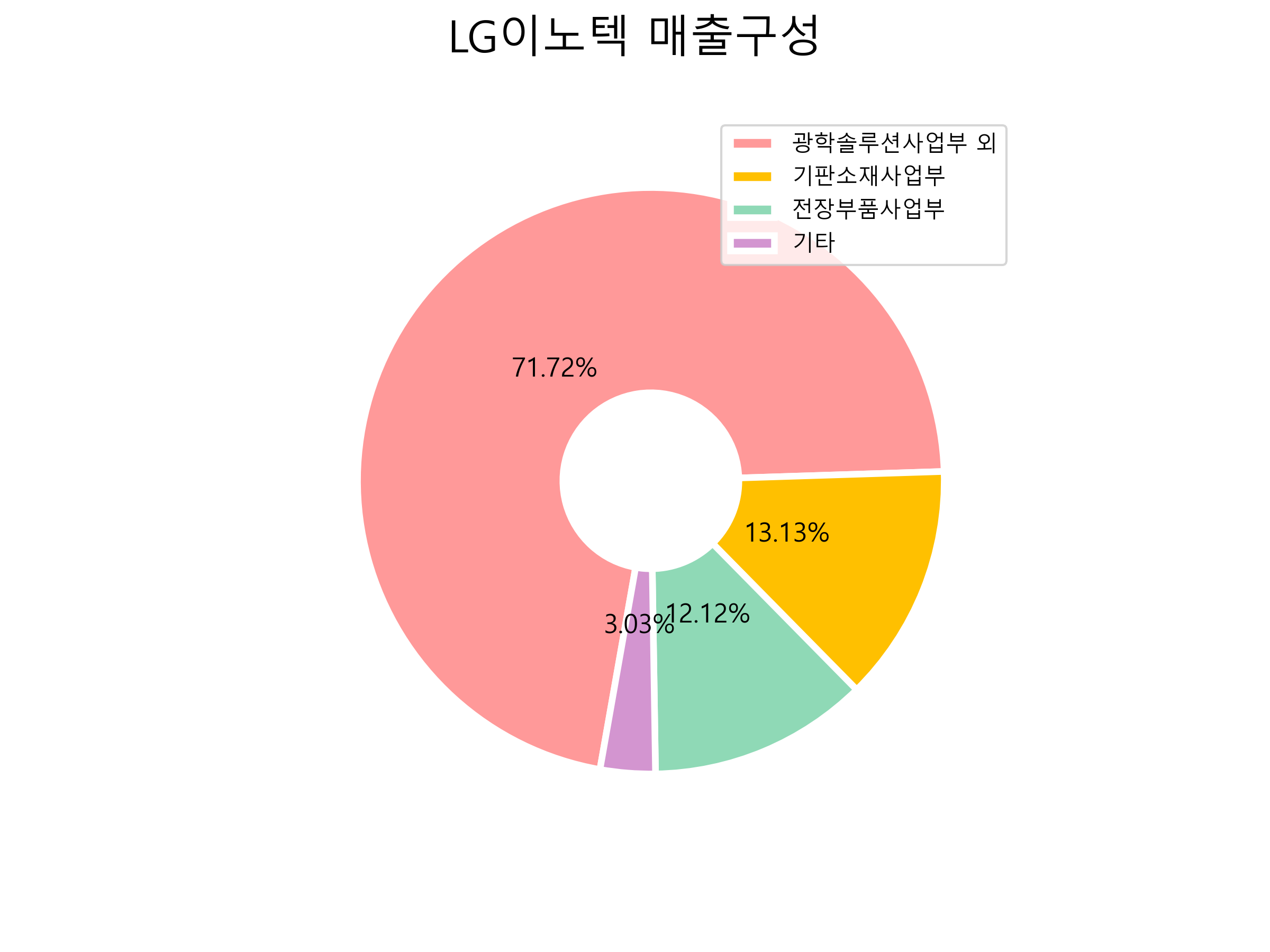 1분기는 계절적 비수기인데 카메라 모듈 분야를 담당하는 광학솔루션 사업부의 호실적으로 준수한 실적을 기록했습니다. 광학솔루션사업은 전년 동기 대비 69% 증가한 2조2593억원의 매출을 기록했습니다. LG이노텍의 주요 고객사인 애플의 신제품 아이폰 12시리즈가 전체 실적을 견인했다고 볼 수도 있습니다.