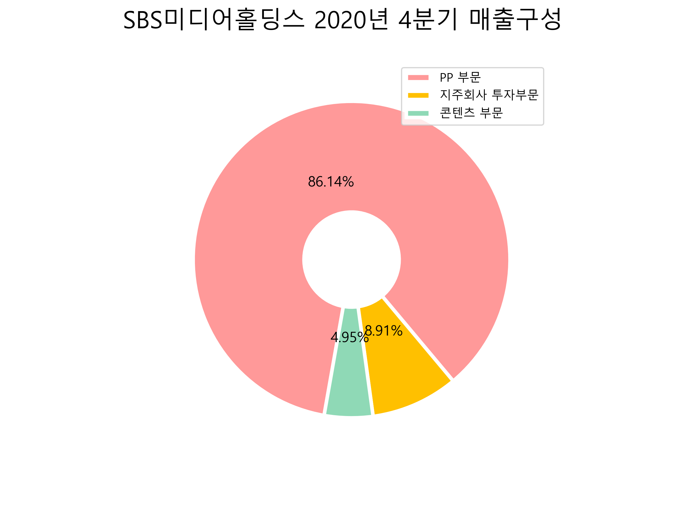 SBS미디어홀딩스의 2020년 4분기 매출구성입니다.