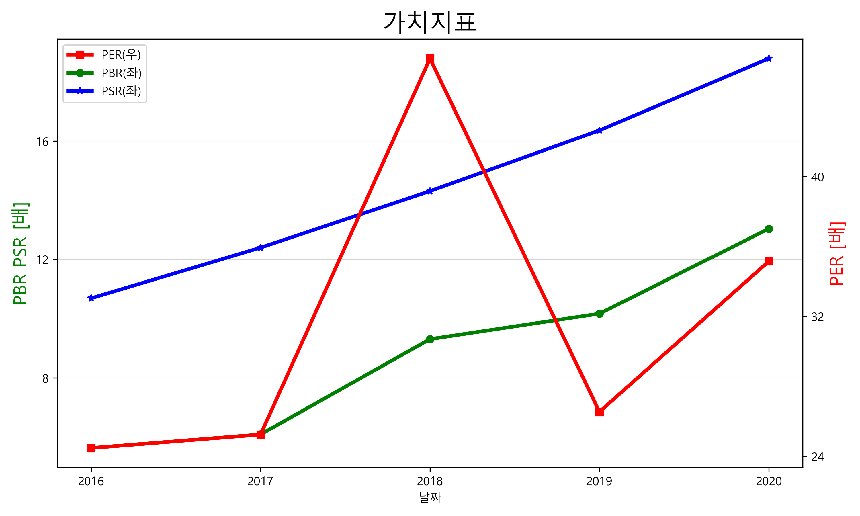 마이크로소프트의 PER, PBR, PSR 그래프입니다.