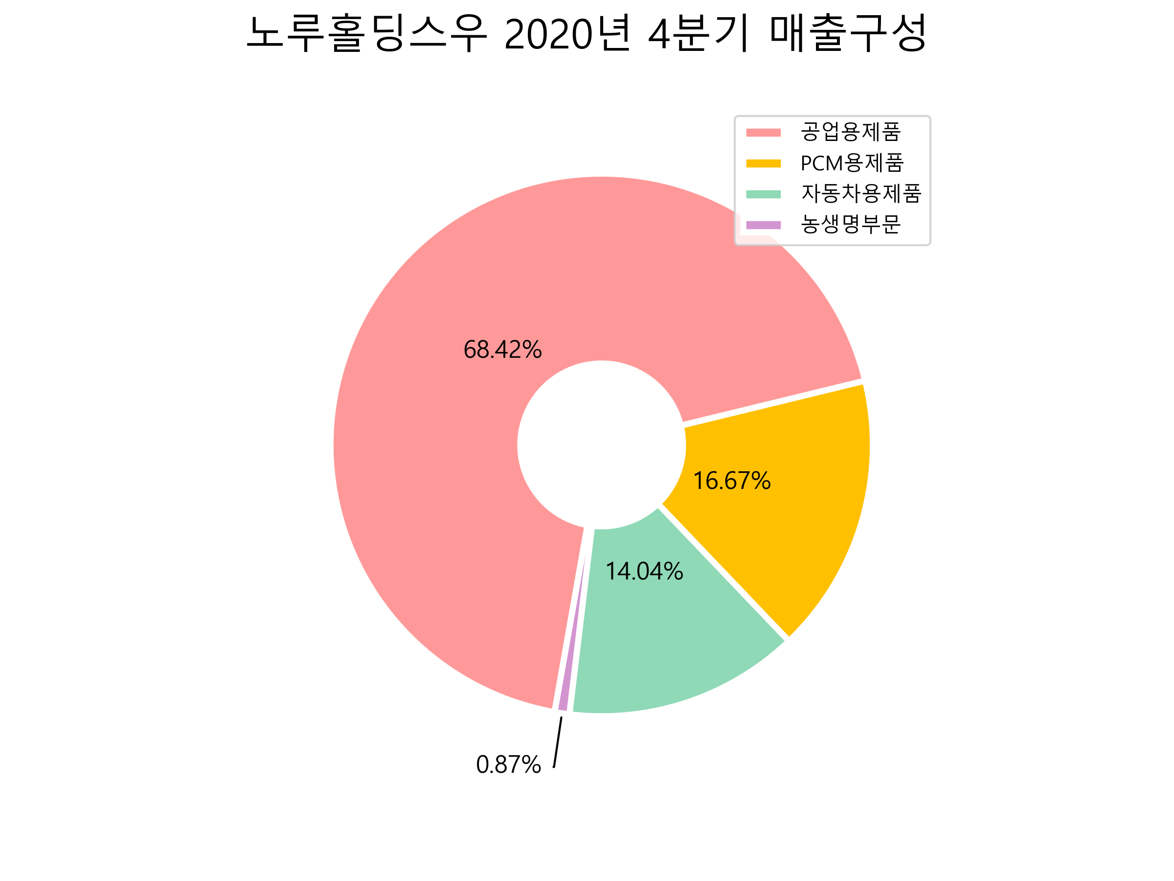 노루홀딩스우의 2020년 4분기 매출구성입니다.