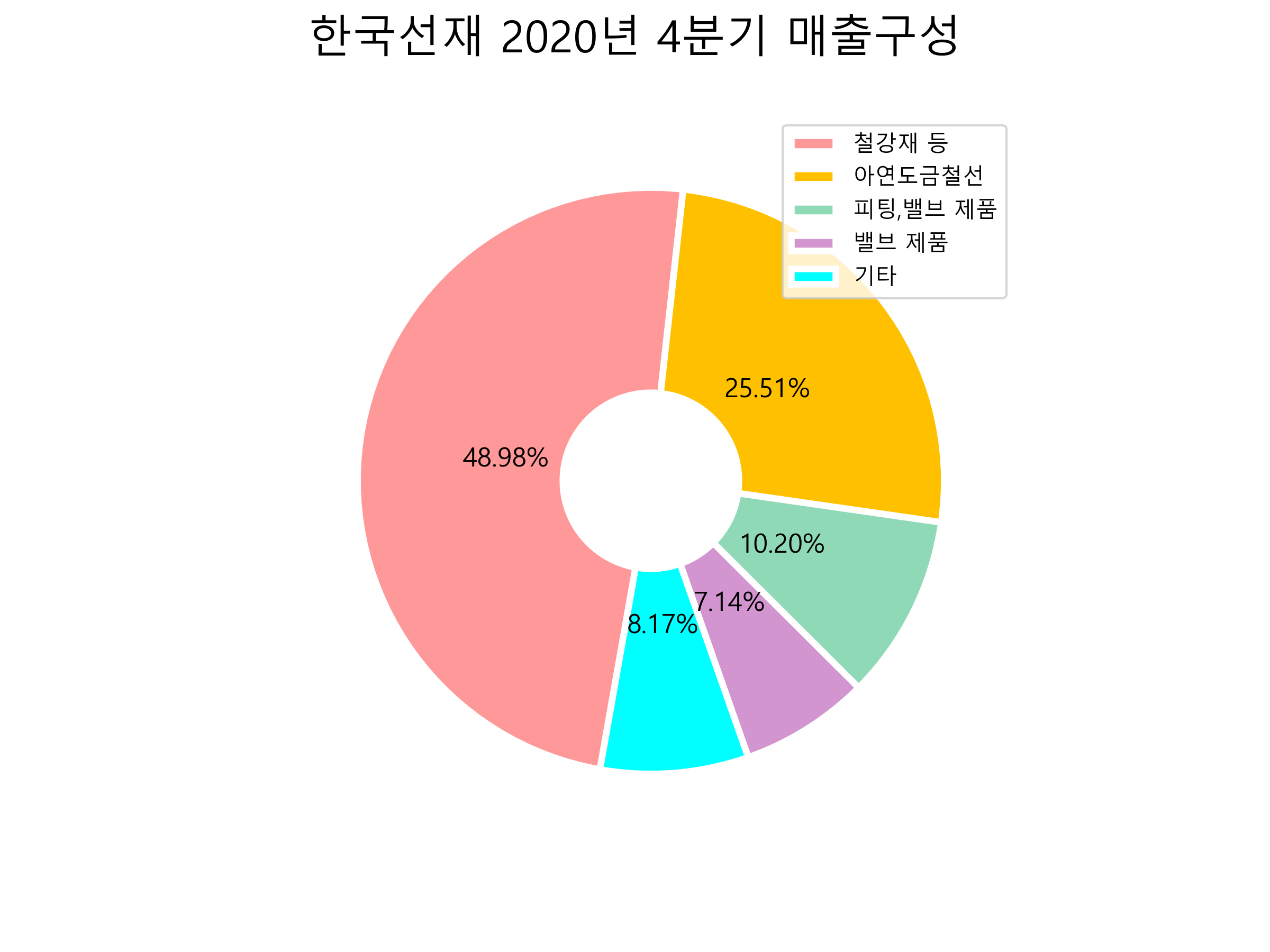 한국선재의 2020년 4분기 매출구성입니다.