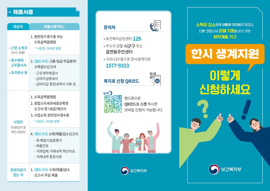 세대주 본인이 복지로(bokjiro.go.kr) 또는 모바일복지로(m.bokjiro.go.kr)를 통해 본인인증 후 신청서를 작성하고 가구원 전체의 개인정보제공동의서, 소득감소와 관련된 증빙자료를 첨부해 제출하면 됩니다.