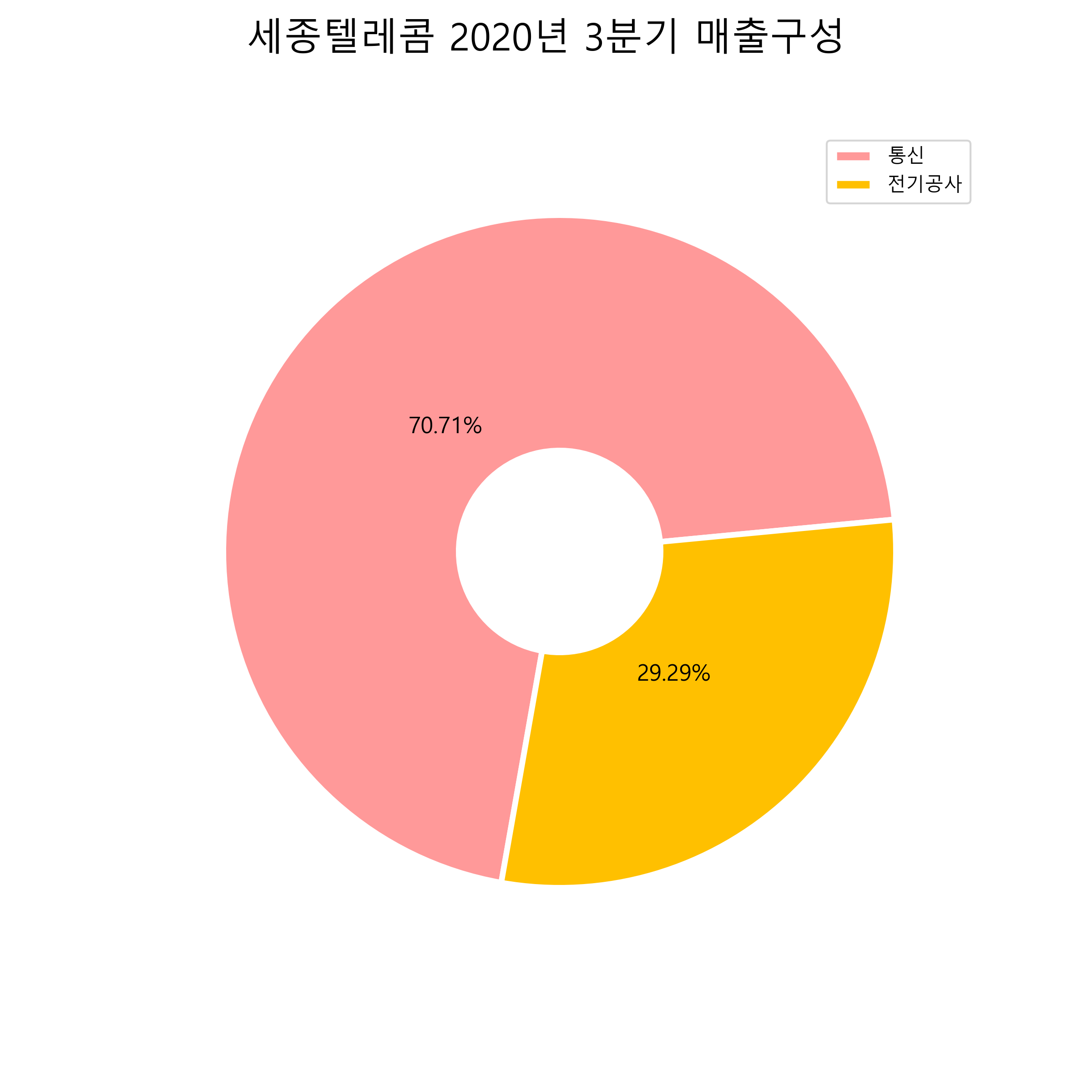 세종텔레콤의 2020년 3분기 매출구성입니다.