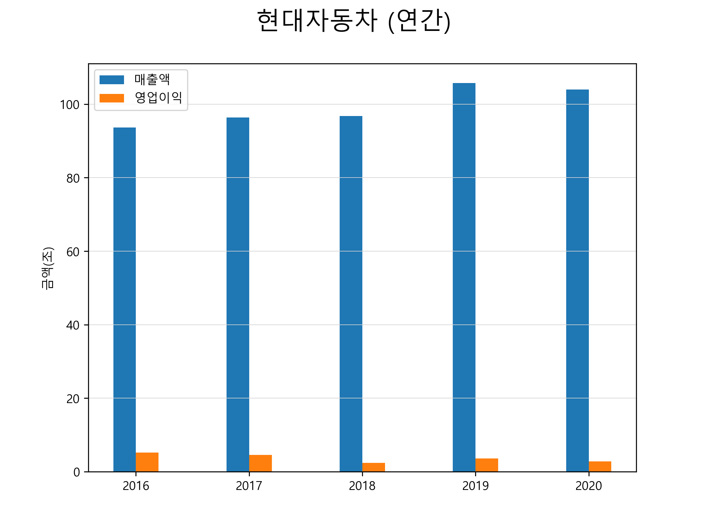 | 매출액 | 93조 6490억 | 96조 3761억 | 96조 8126억 | 105조 7464억 | 103조 9976억 |