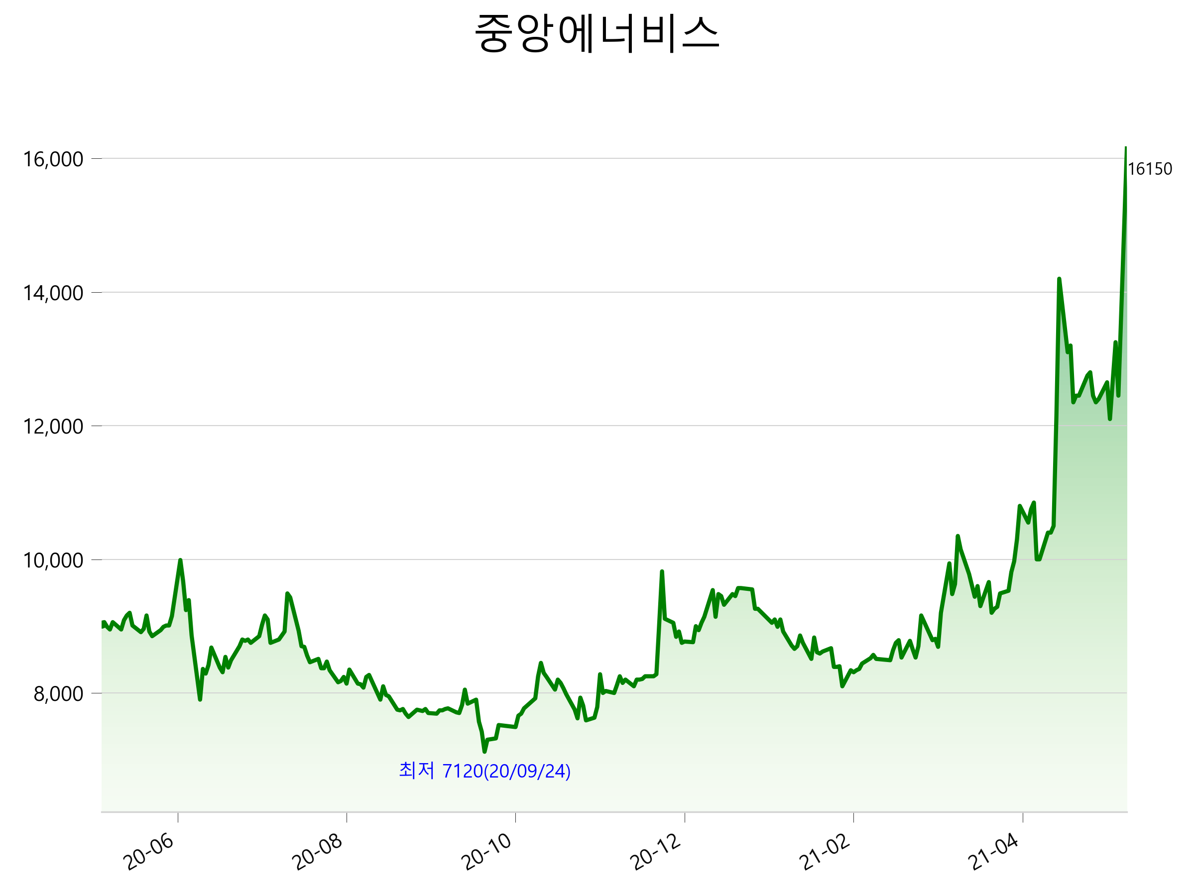 52주 최고가는 16,150원(2021-05-10), 52주 최저가는 7,120원(2020-09-24)으로 52주간 주가 상승률은 78.5% 입니다.
