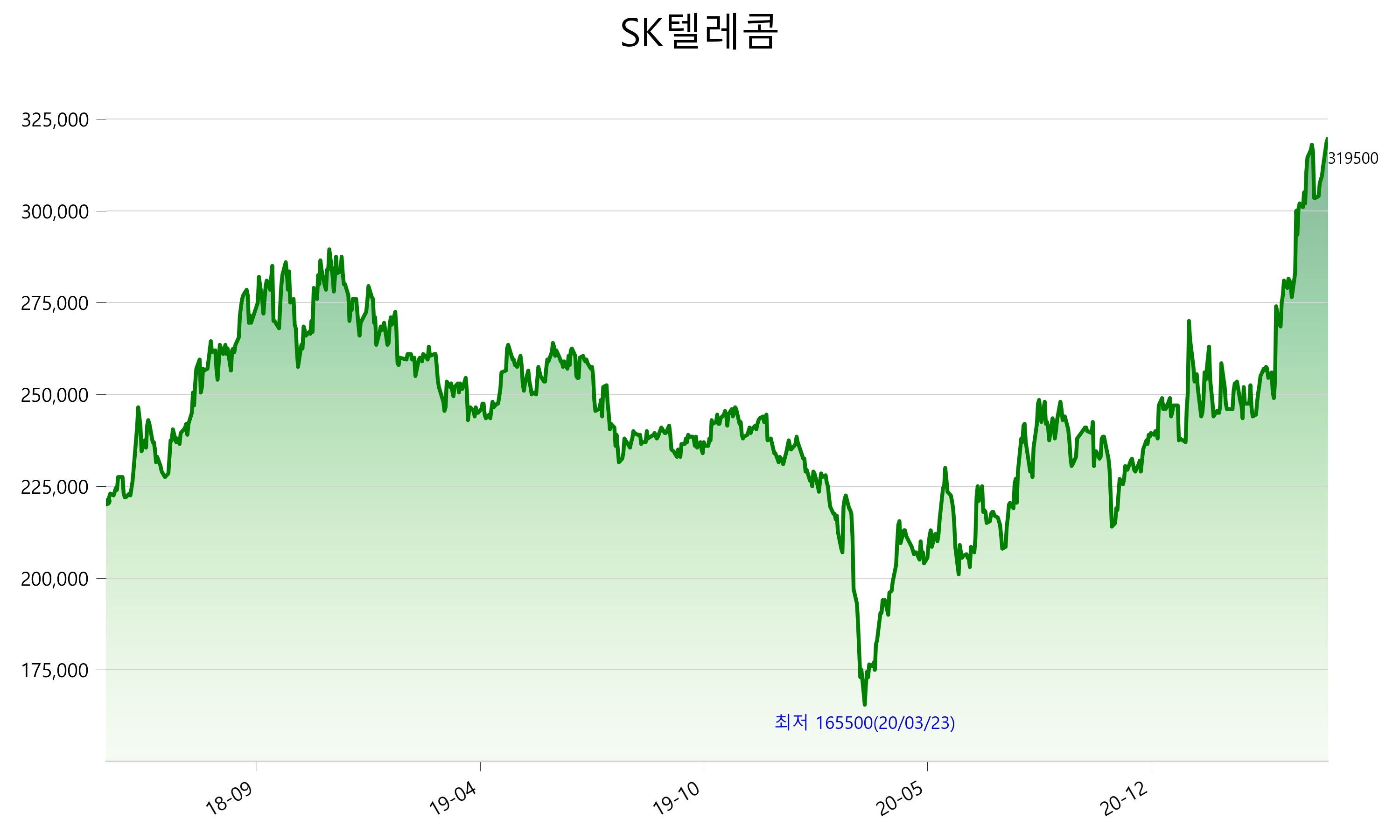 5월 11일 기준 주가는 319,500원 입니다. 아래는 최근 3년간의 주가흐름입니다.