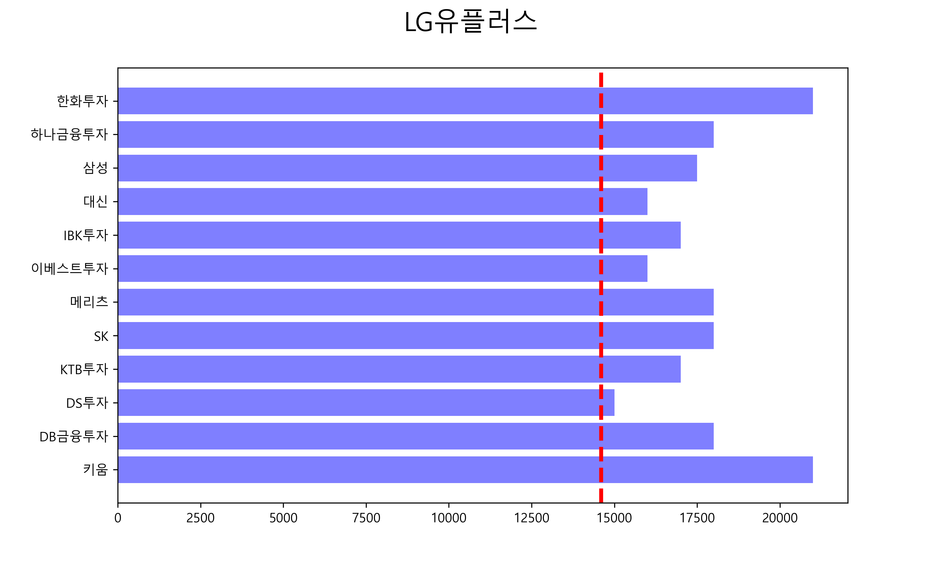 현재 주가보다 상승할 것이라고 예측한 증권사은 12 곳이며 하락할 것이라고 예측한 증권사는 0곳 입니다. LG유플러스의 5월 12일 기준 현재 주가로 14,600원 입니다. 목표주가 평균추정치는 17,708원 으로 현재 주가 대비 21.3% 높습니다.