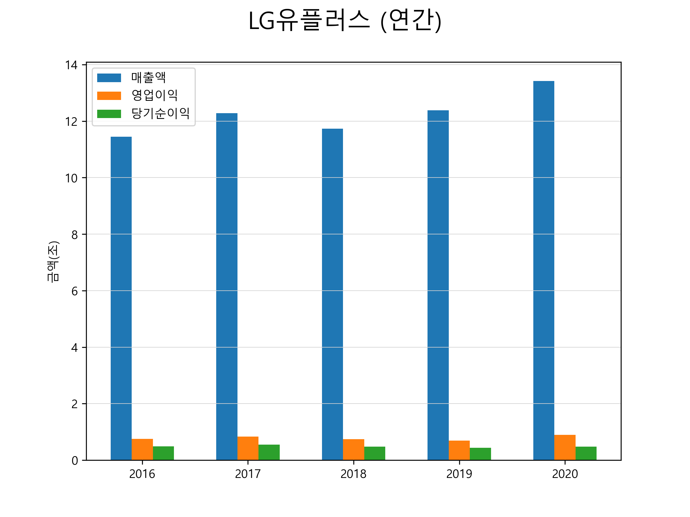 | 매출액 | 11조 4510억 | 12조 2794억 | 11조 7256억 | 12조 3820억 | 13조 4176억 |