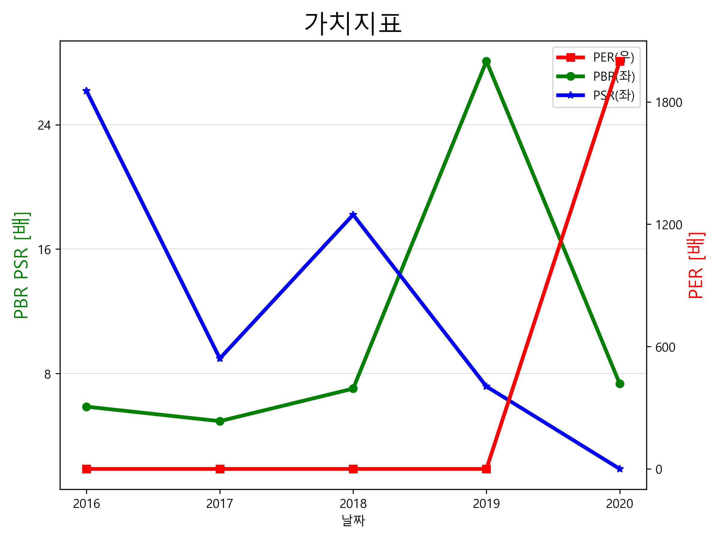 - PER : 2,446.6, 동일업종 PER : 62.23배
