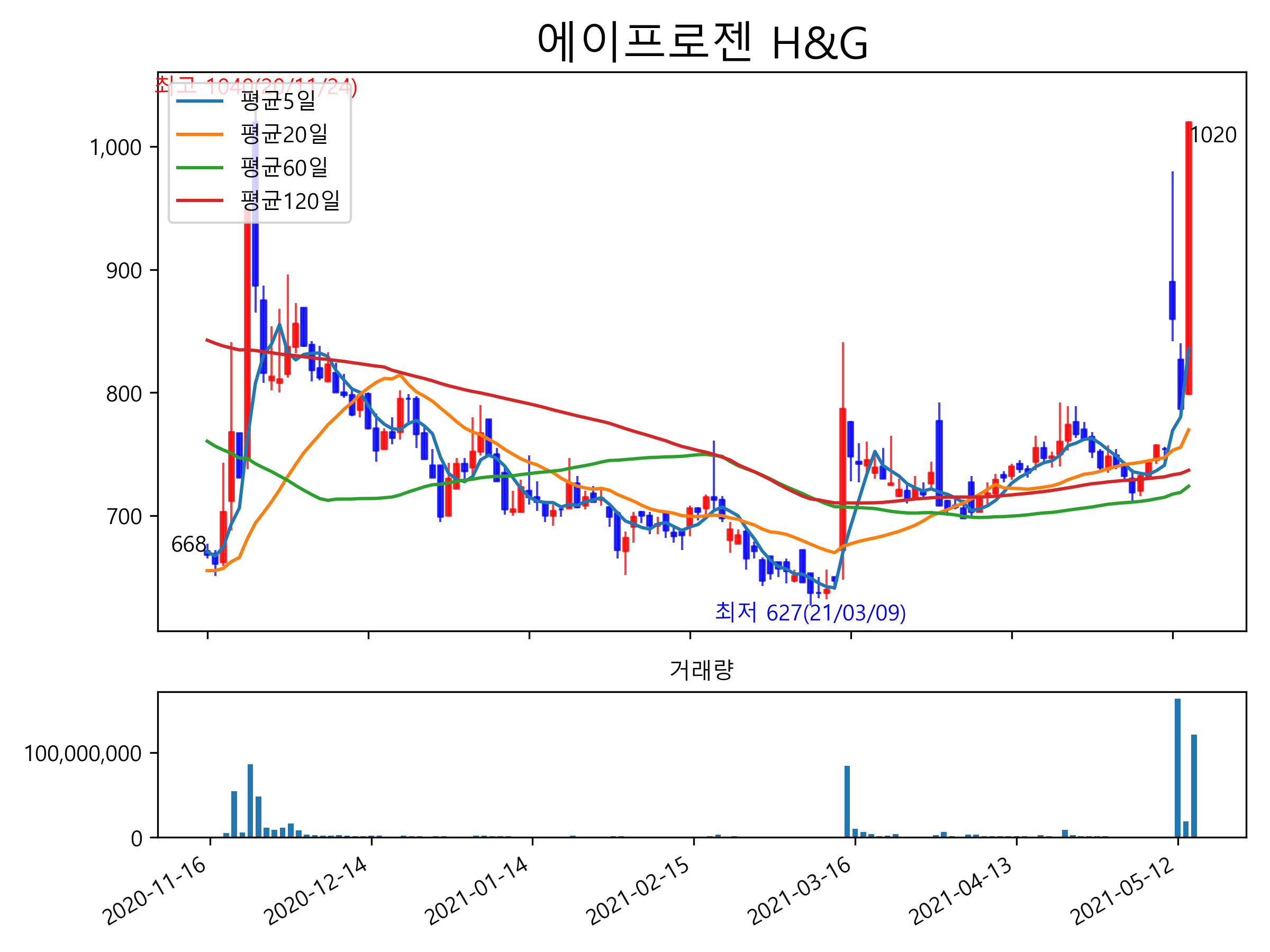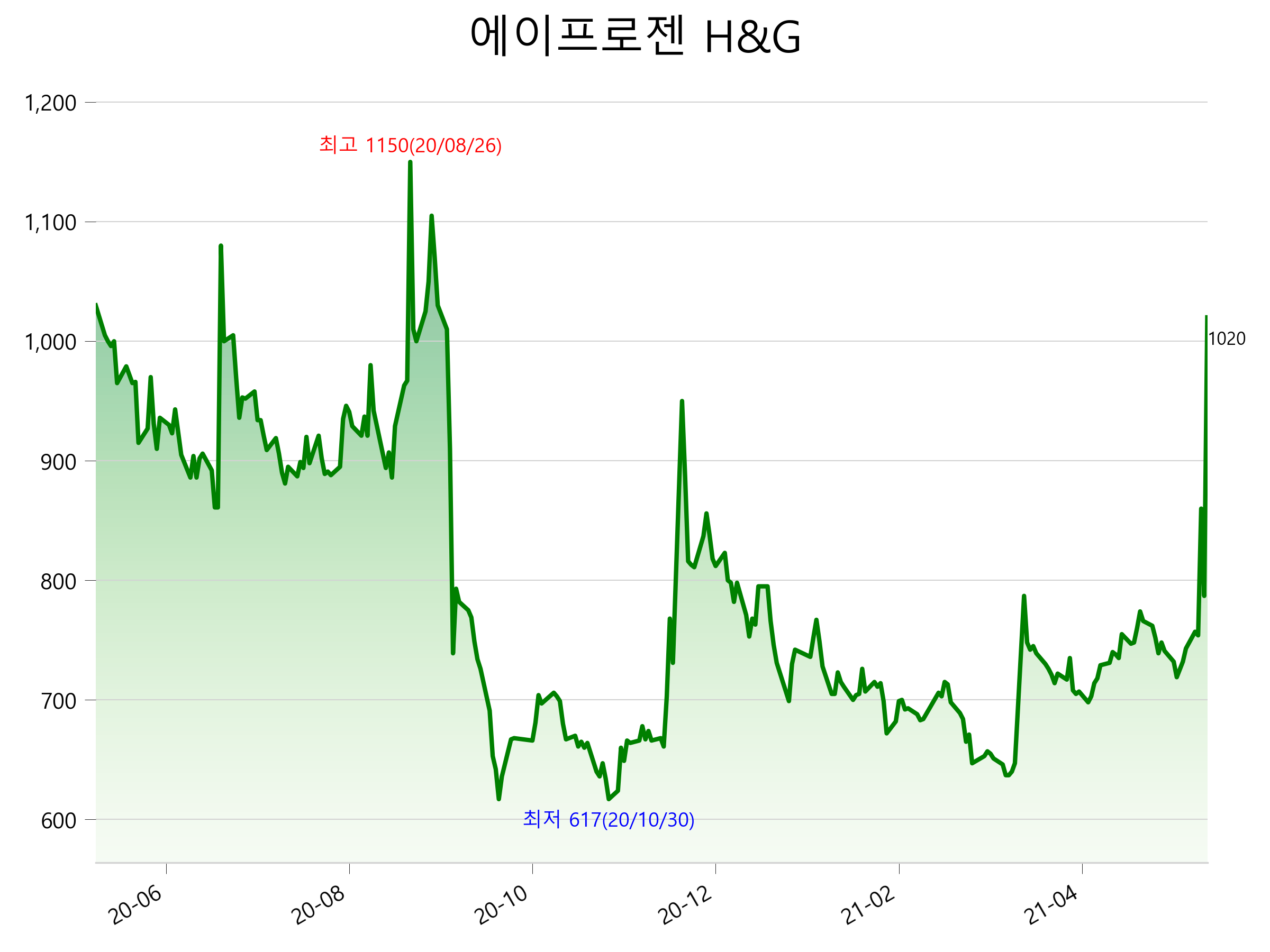 에이프로젠 H&G(109960)의 5월 14일 주가가 급등했습니다. 에이프로젠 H&G에 대해 어떠한 기업이며, 주가가 급등한 이유에 대해서 알려드리겠습니다.