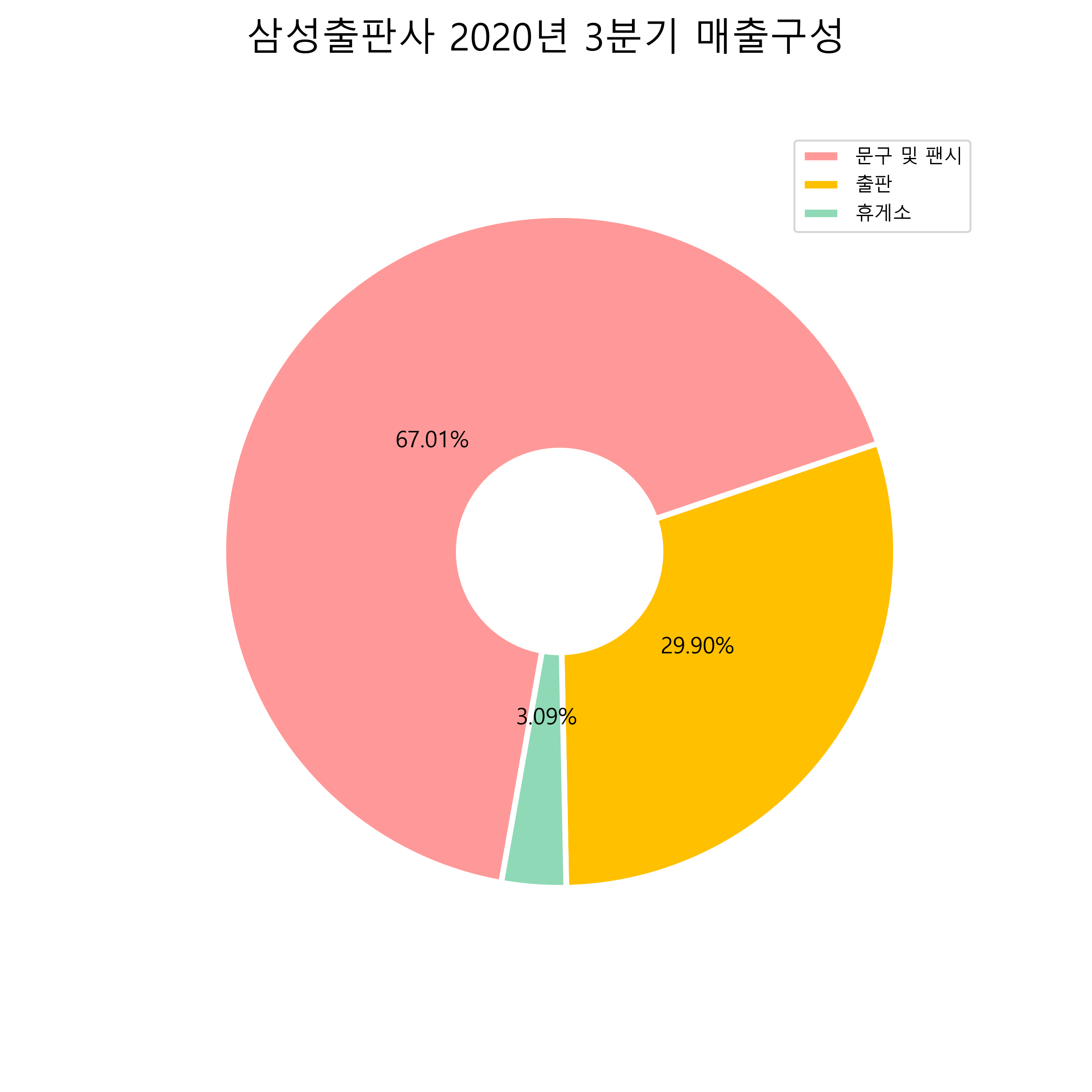삼성출판사의 2020년 3분기 매출구성입니다.