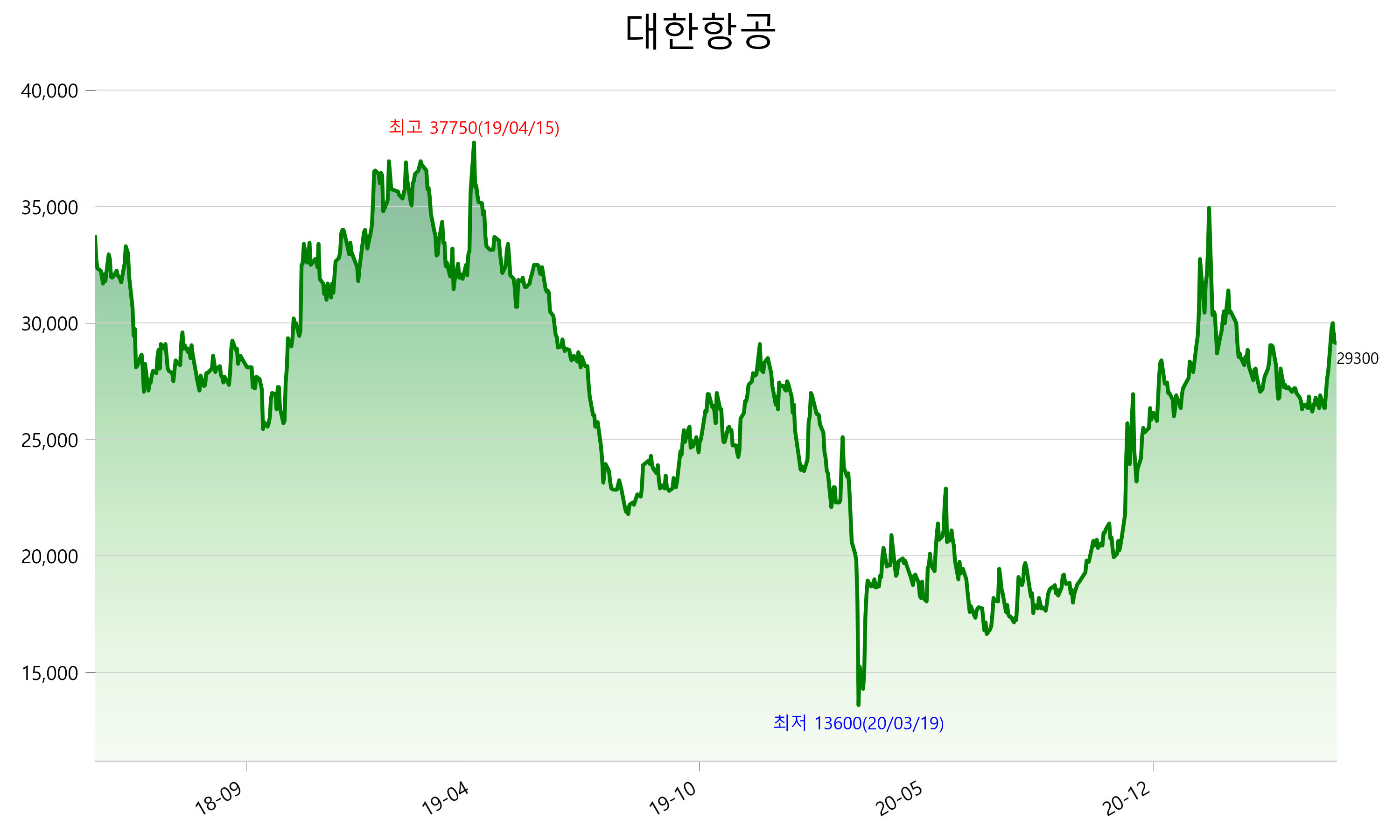 5월 14일 기준 주가는 29,300원 입니다. 아래는 최근 3년간의 주가흐름입니다.