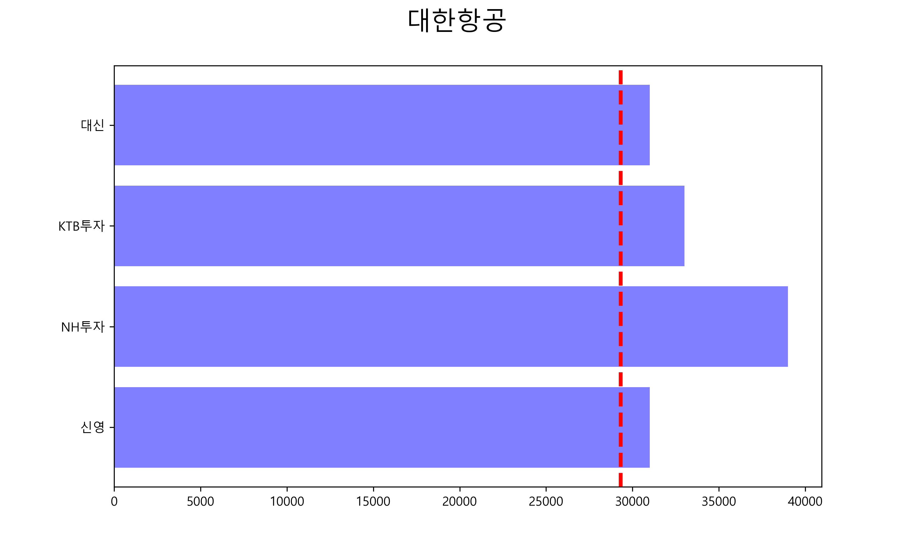 현재 주가보다 상승할 것이라고 예측한 증권사은 4 곳이며 하락할 것이라고 예측한 증권사는 0곳 입니다. 대한항공의 5월 14일 기준 현재 주가로 29,300원 입니다. 목표주가 평균추정치는 33,500원 으로 현재 주가 대비 14.3% 높습니다.