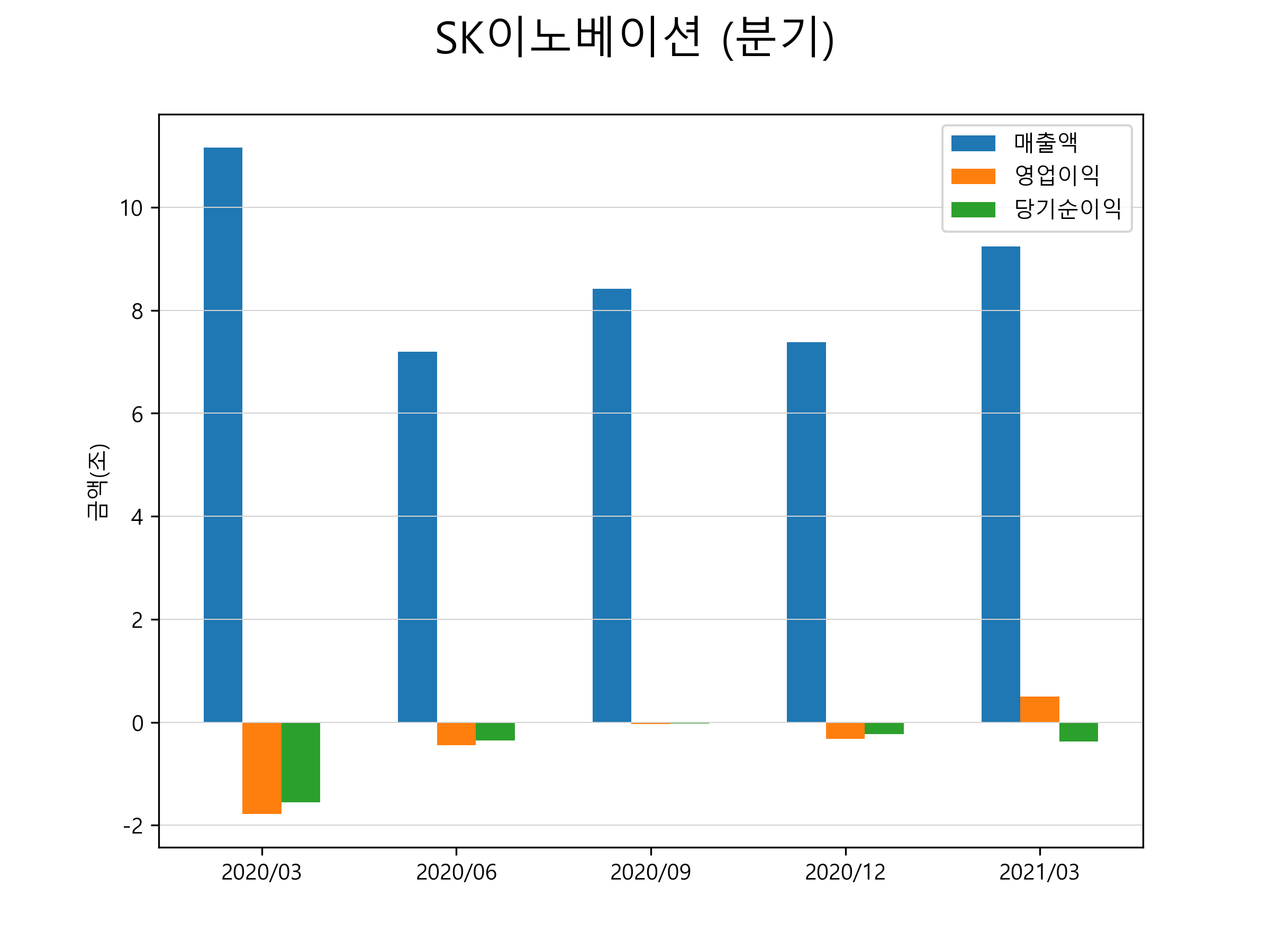 SK이노베이션은 2020년 1~4분기 연속으로 적자를 냈지만 올해 1분기 흑자전환에 성공했습니다. 유가 상승 및 석유화학 제품가격 상승에 힘입어 지난해 기록한 대규모 적자에서 벗어났으며, 배터리 사업도 본격적인 성장세를 보이며 지난해보다 매출액이 80%가량 늘었습니다.