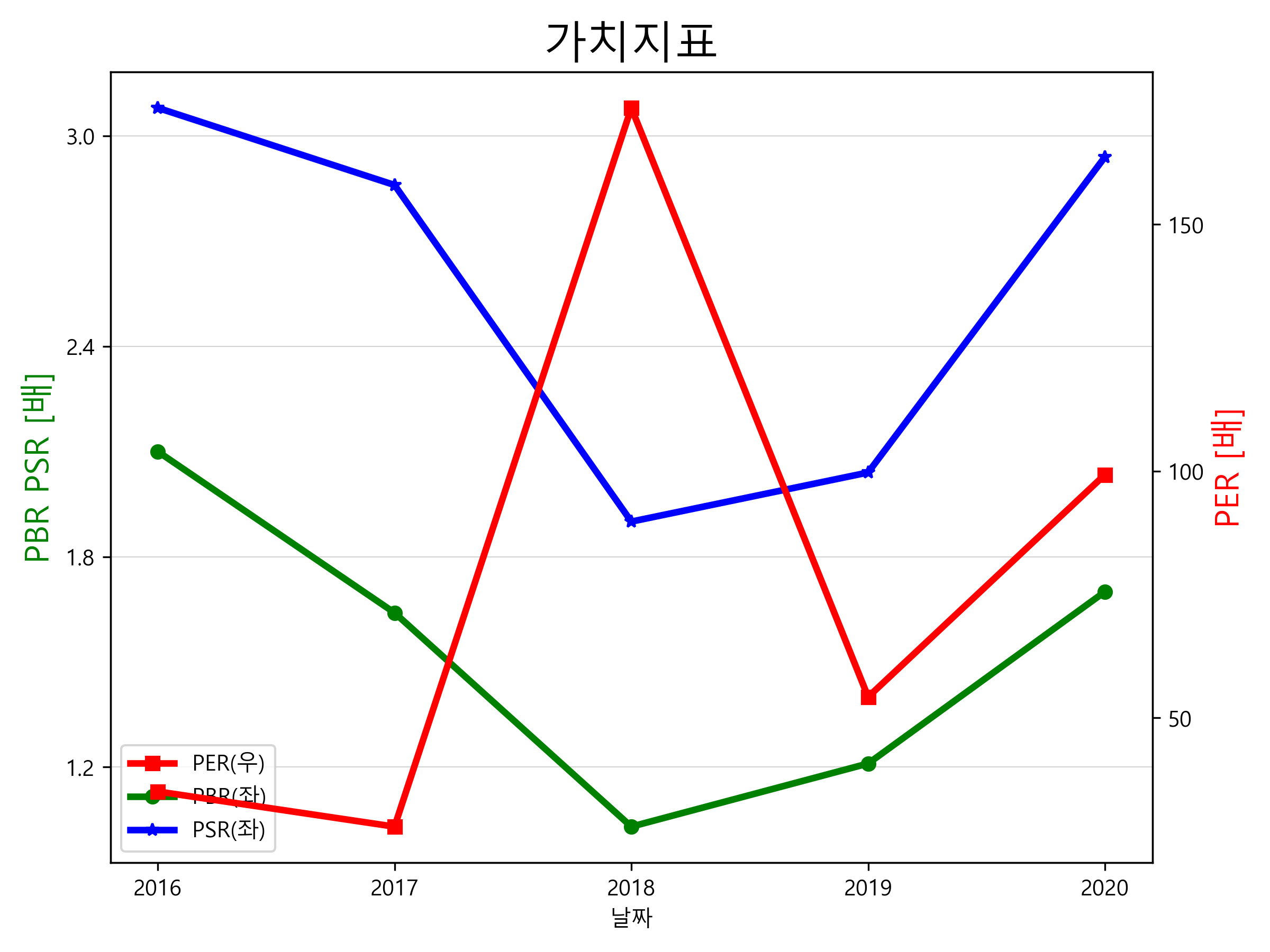 - PER : 144.17배, 동일업종 PER : 124.13배